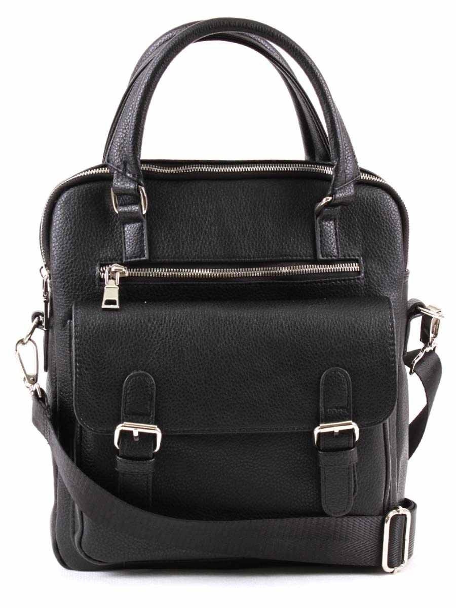 Сумка мужская с одним отделением на молнии. Внутри карман на молнии и карман для телефона. На передней стенке карман на молнии и карман под клапаном на магнитных кнопках. На задней стенке карман на молнии. Высота ручек 11 см, Максимальная длина сьемного ремня на карабинах 1530 мм