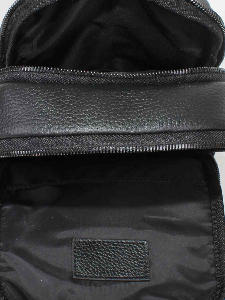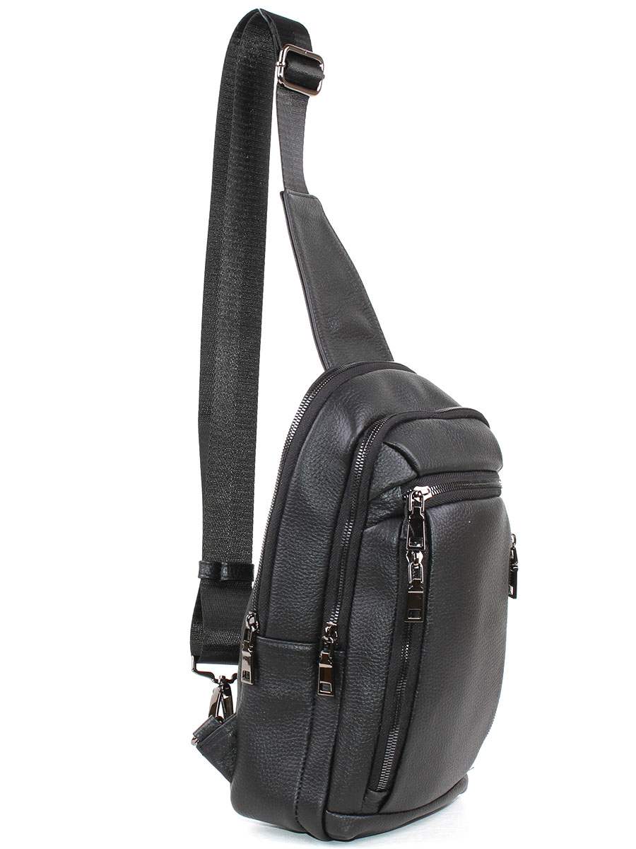Мужская сумка-слинг с двумя отделениями на молнии. На передней стенке два вертикальных и один горизонтальный карман на молнии. Внутри - два открытых кармана. Регулируемый ремень с максимальной длиной 115 см. перестёгивается как на правую, так и на левую сторону.