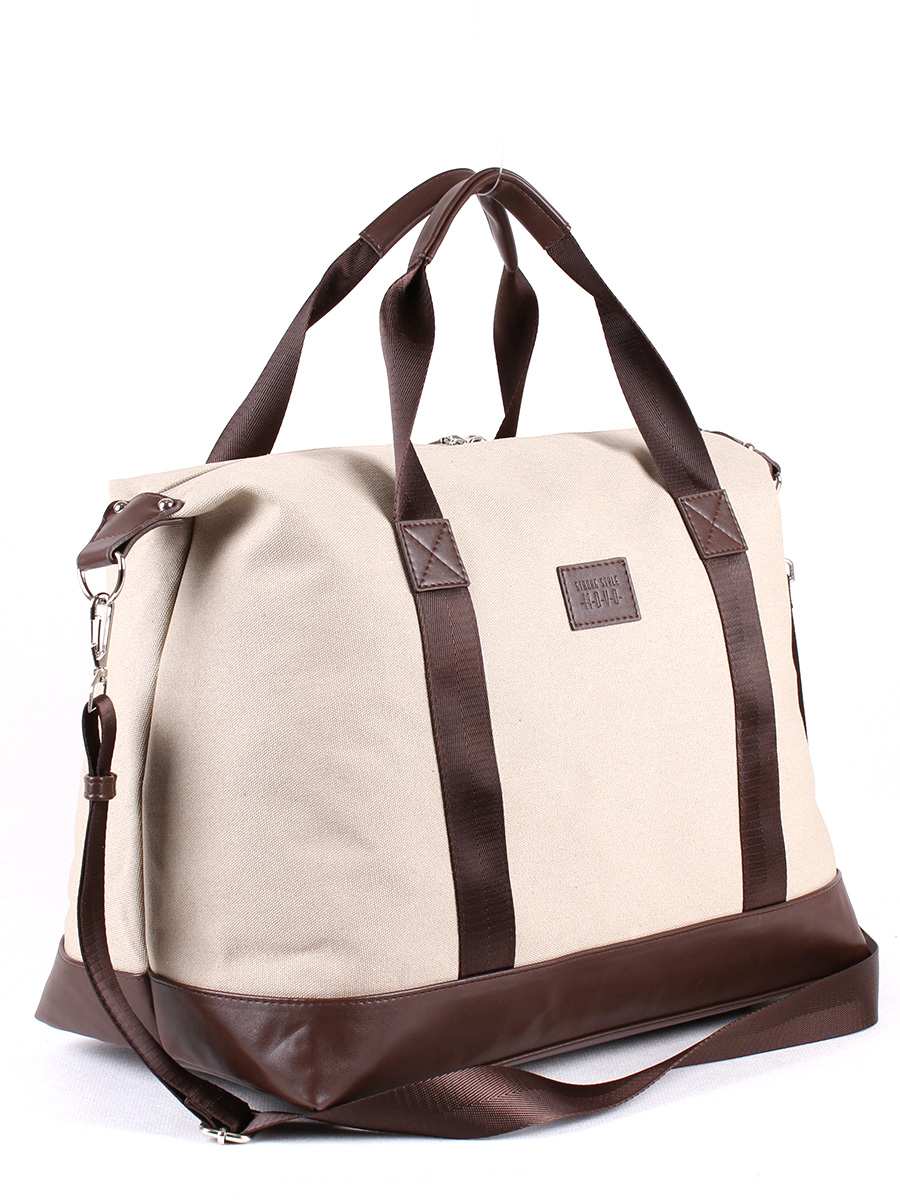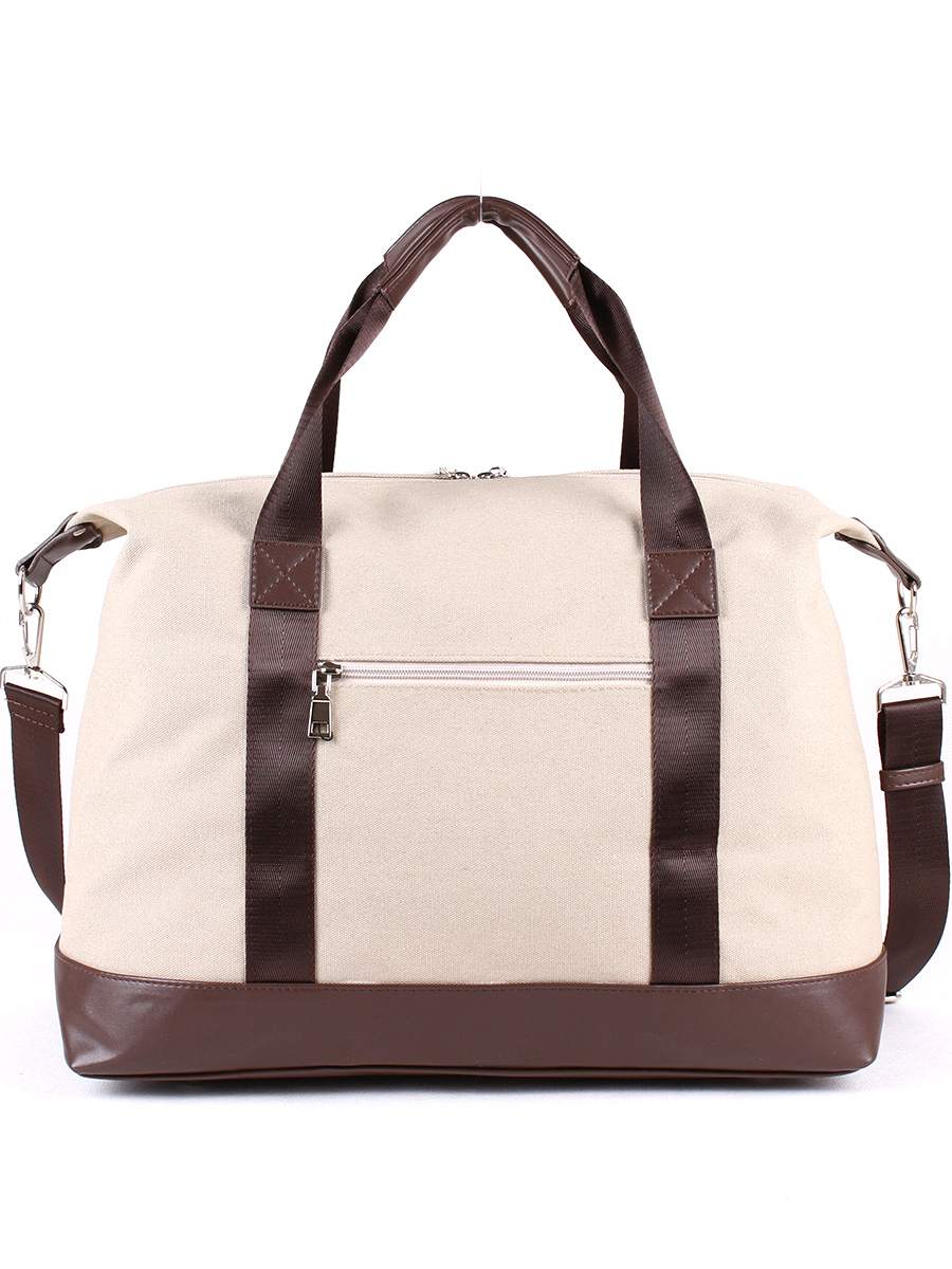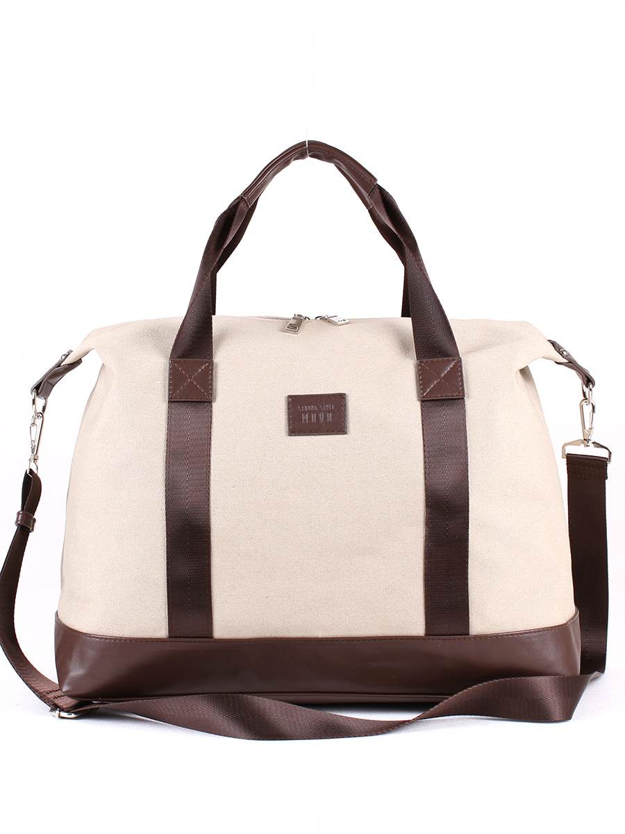 Сумка мужская, дорожная, из текстильного материала с отделкой из искусственной кожи. Одно отделение на молнии. На задней стенке - карман на молнии. Внутри - карман на молнии для документов, два открытых кармана для мелочей. Две ручки  высотой 20 см. Съёмный регулируемый ремень.