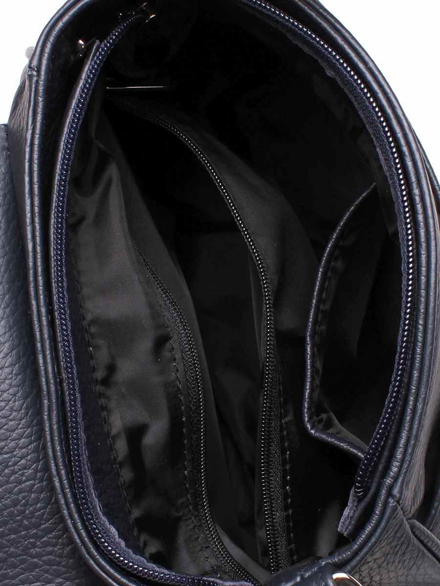 Одно отделение на молнии. Дополнительно закрывается клапаном на магнитную кнопку. На передней стенке плоский карман, на задней стенке карман на молнии. Внутри есть карман для сотового и карман на молнии. Ручка регулируется по длине (максимум - 130см).