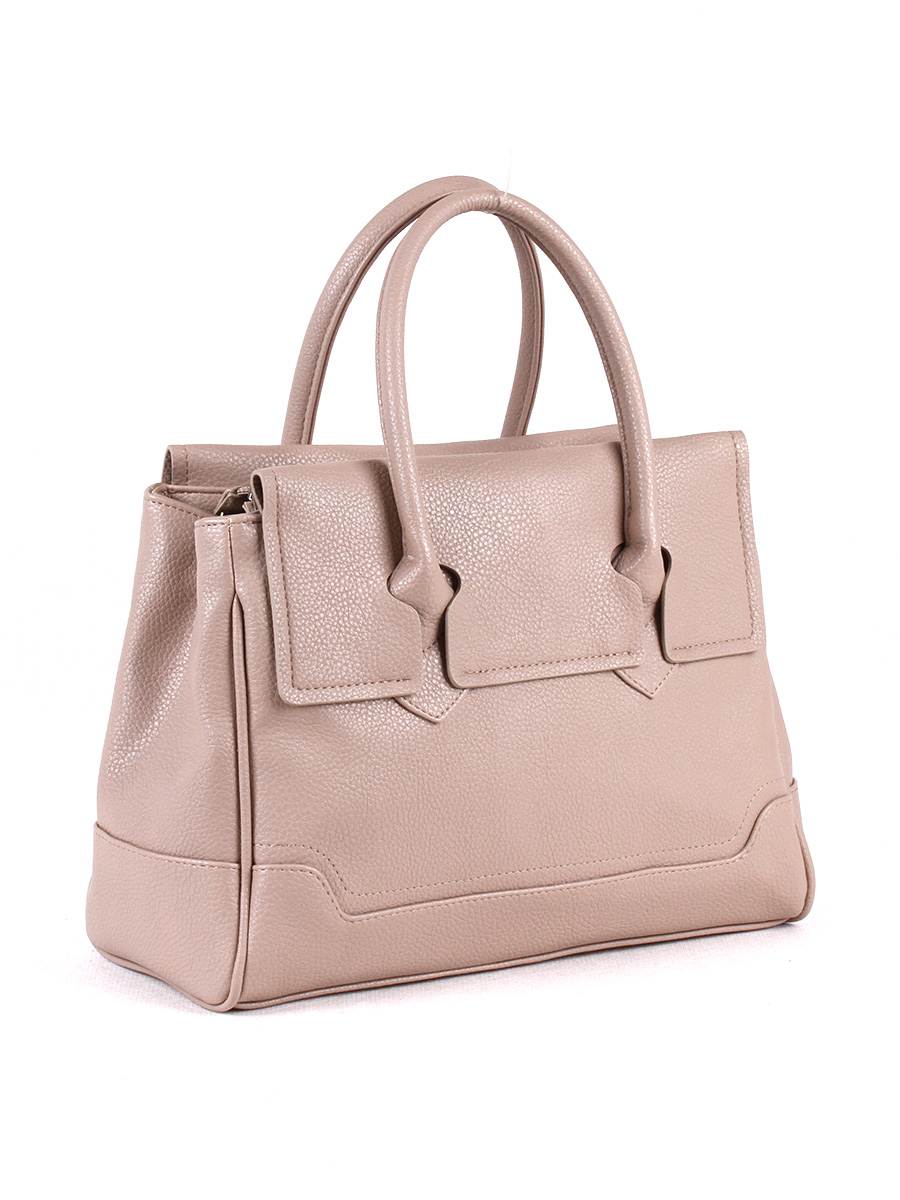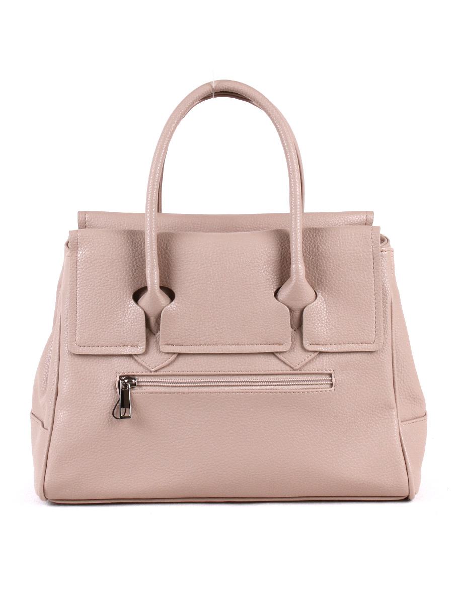 Сумка женская с одним отделением, закрывается на молнию. На стенках декоративные клапаны. На задней стенке карман на молнии. Внутри карман на молнии, перегородка на молнии и карман для сотового. Высота ручек130 мм.