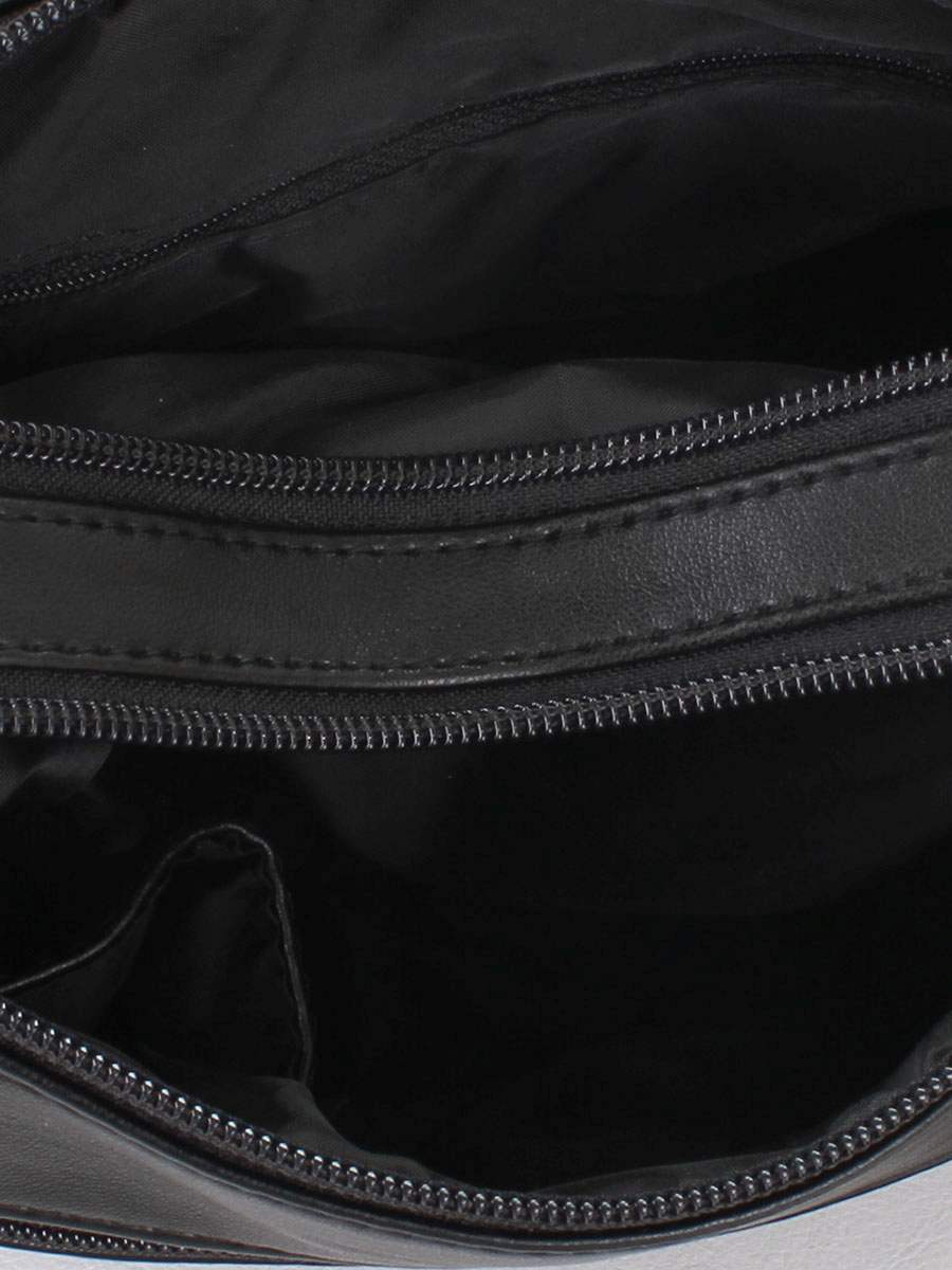 Сумка женская с двумя отделениями, закрывается на молнии и клапан. На задней, передней стенках и клапане карманы на молнии. Сбоку карманы на кнопках. Внутри карман на молнии и карман для сотового. Ручка 1500 мм.