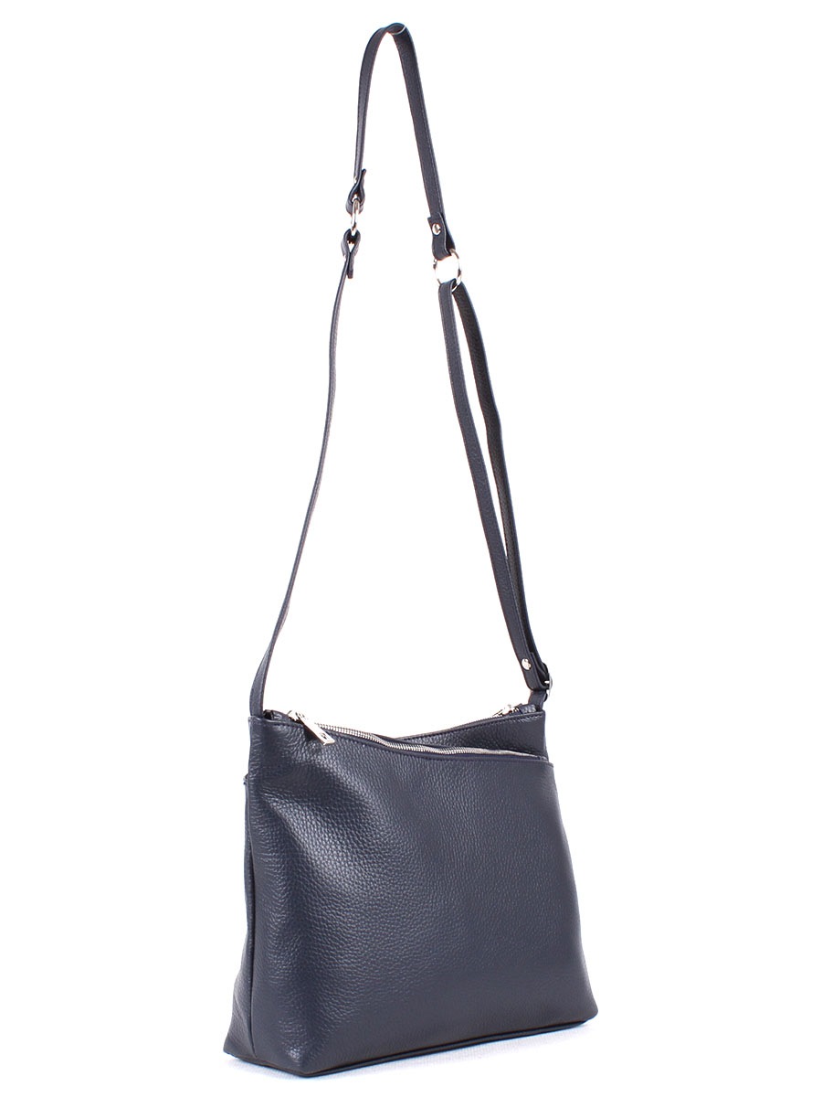 Сумка с тремя отделениями, два закрываются на молнии, одно - на магн.кнопку. Внутри карман д\сотового и карман на молнии. На задней стенке карман на молнии. Высота ручки 65см.
