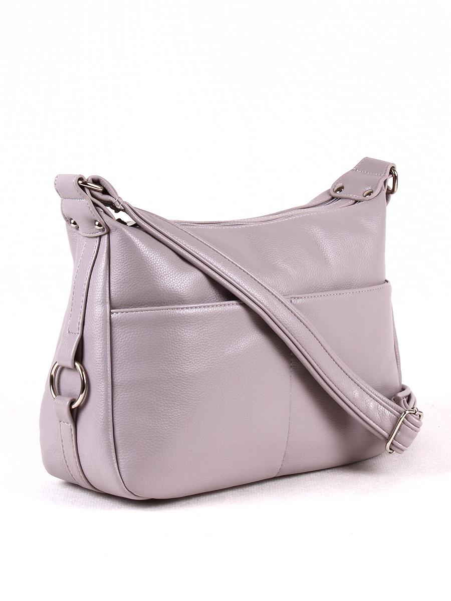 Сумка женская с двумя отделениями на молниях.  Внутри карманы на молнии. На задней стенке карман на молнии. На  передней стенке два накладных карман на кнопках. Длина регулируемого ремня -140 см.
