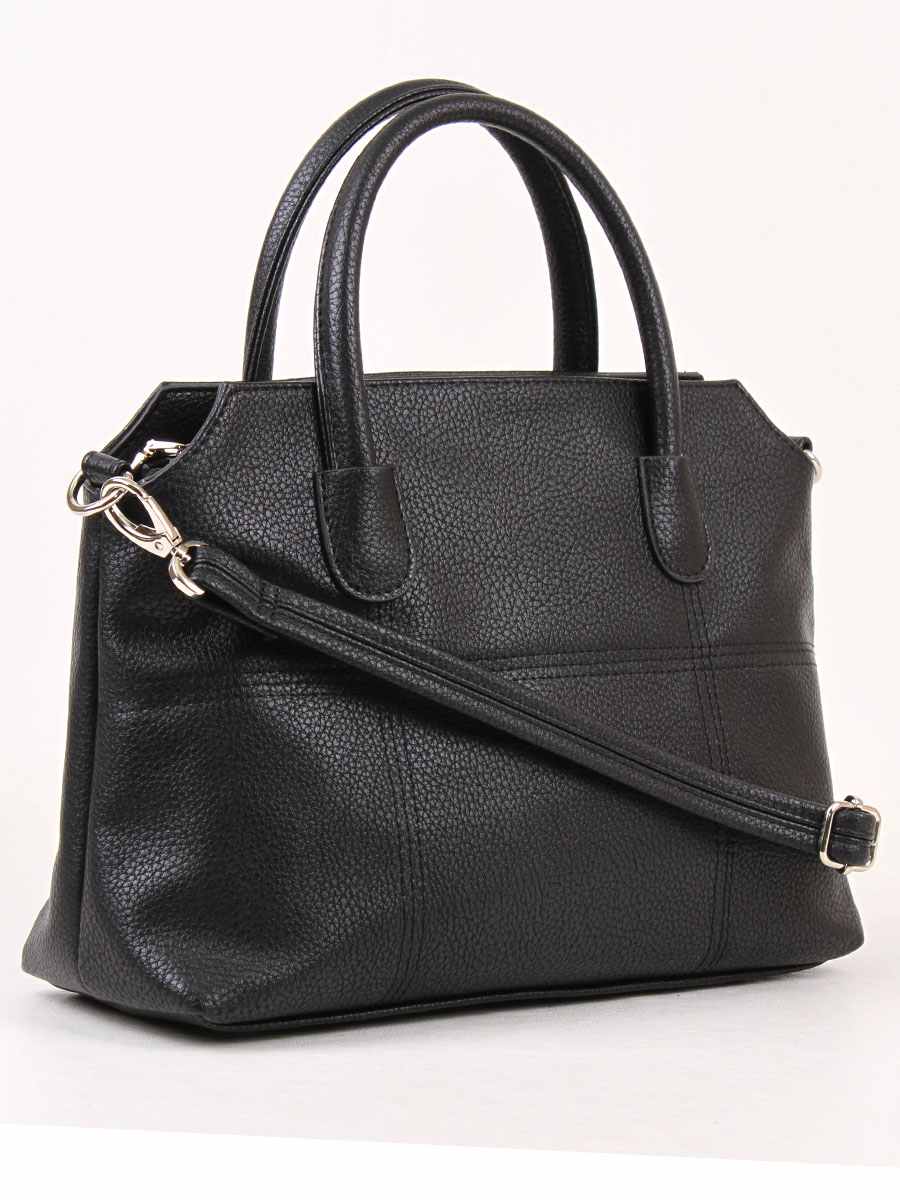 Сумка женская с одним отделением на молнии. На задней стенке карман на молнии. Внутри -перегородка на молнии, карман на молнии, карман для телефона. Высота ручек 9 см, сьемный ремень регулируется по длинне.