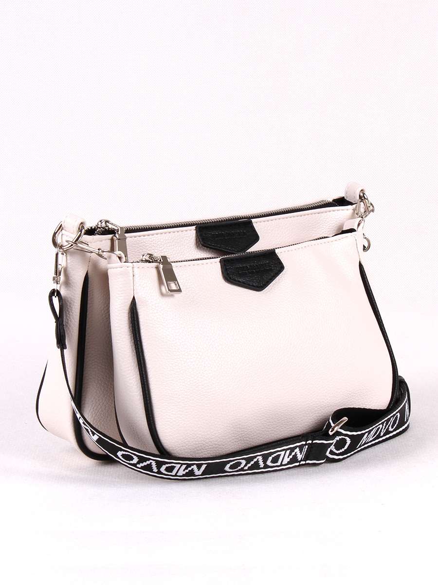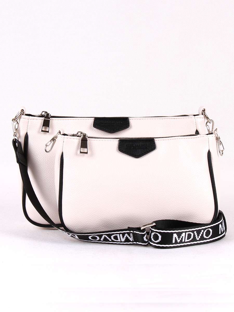 Сумка женская из 2-х отдельных элементов на молнии. Внутри 2 плоских открытых кармана. Сьемный ремень регулируется по длине.