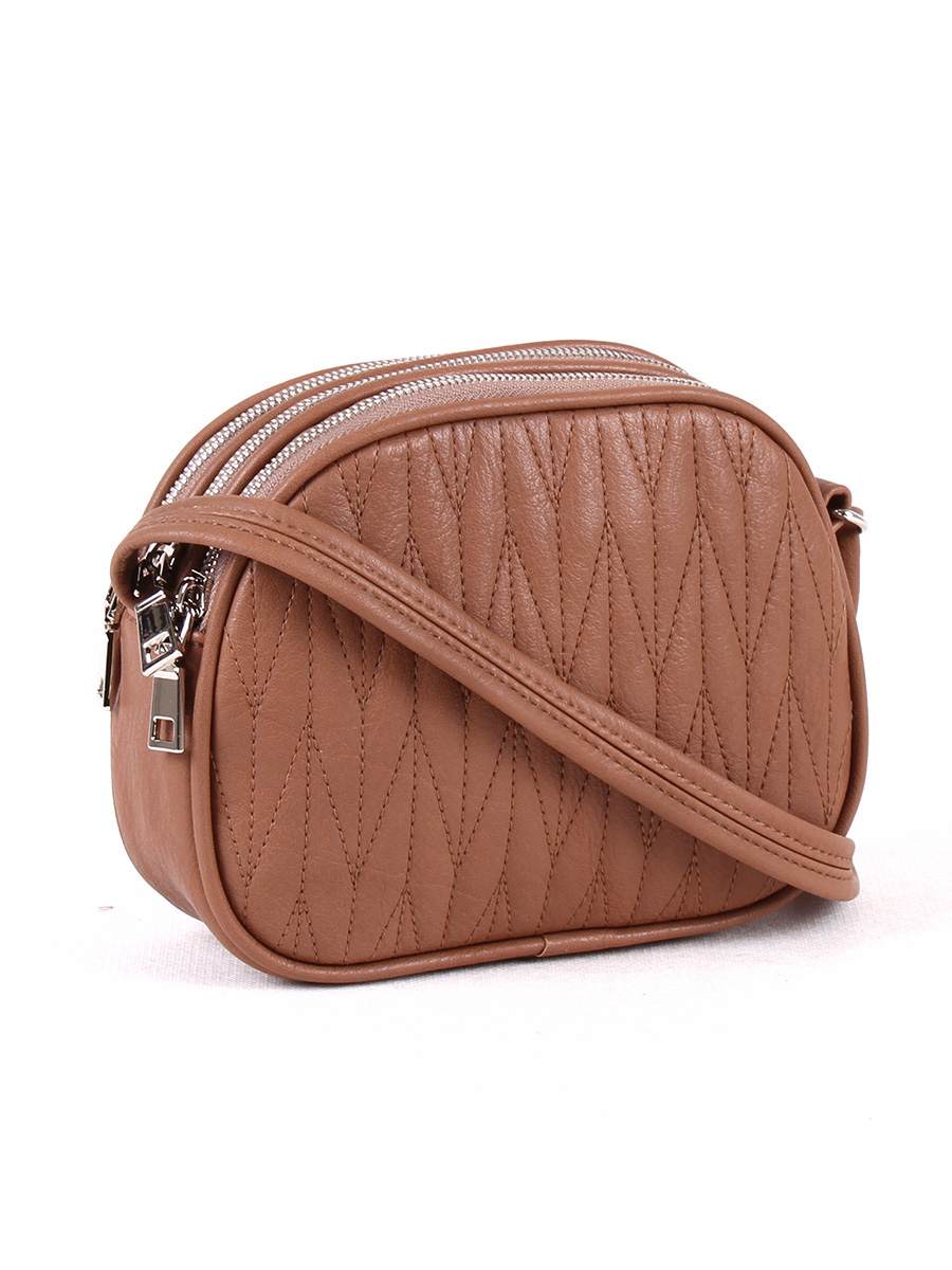 Сумка женская с 3-я отделениями на молниях. На задней стенке карман на молниях. Внутри среднего отделения карман для телефона. Наплечный ремень регулируется по длине. максимальная длина ремня 1560 мм