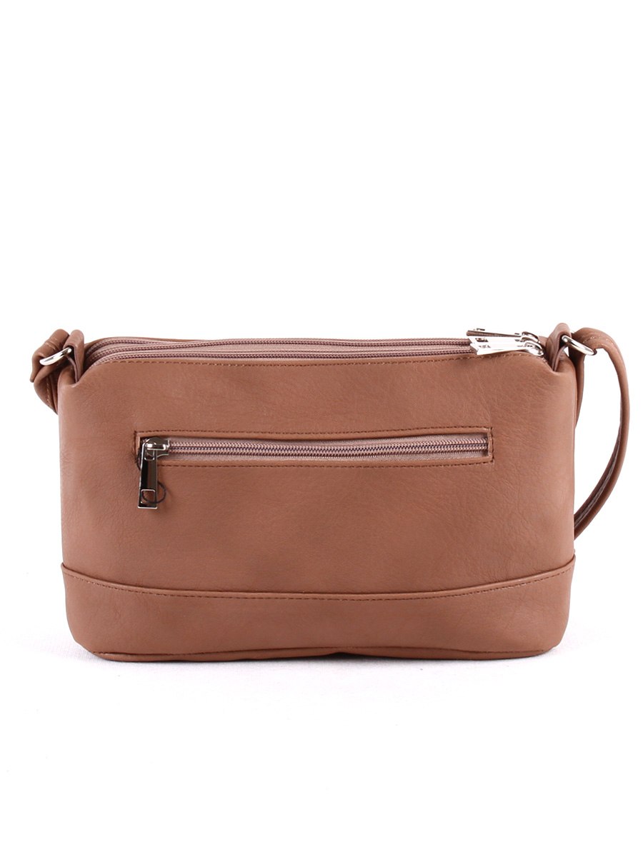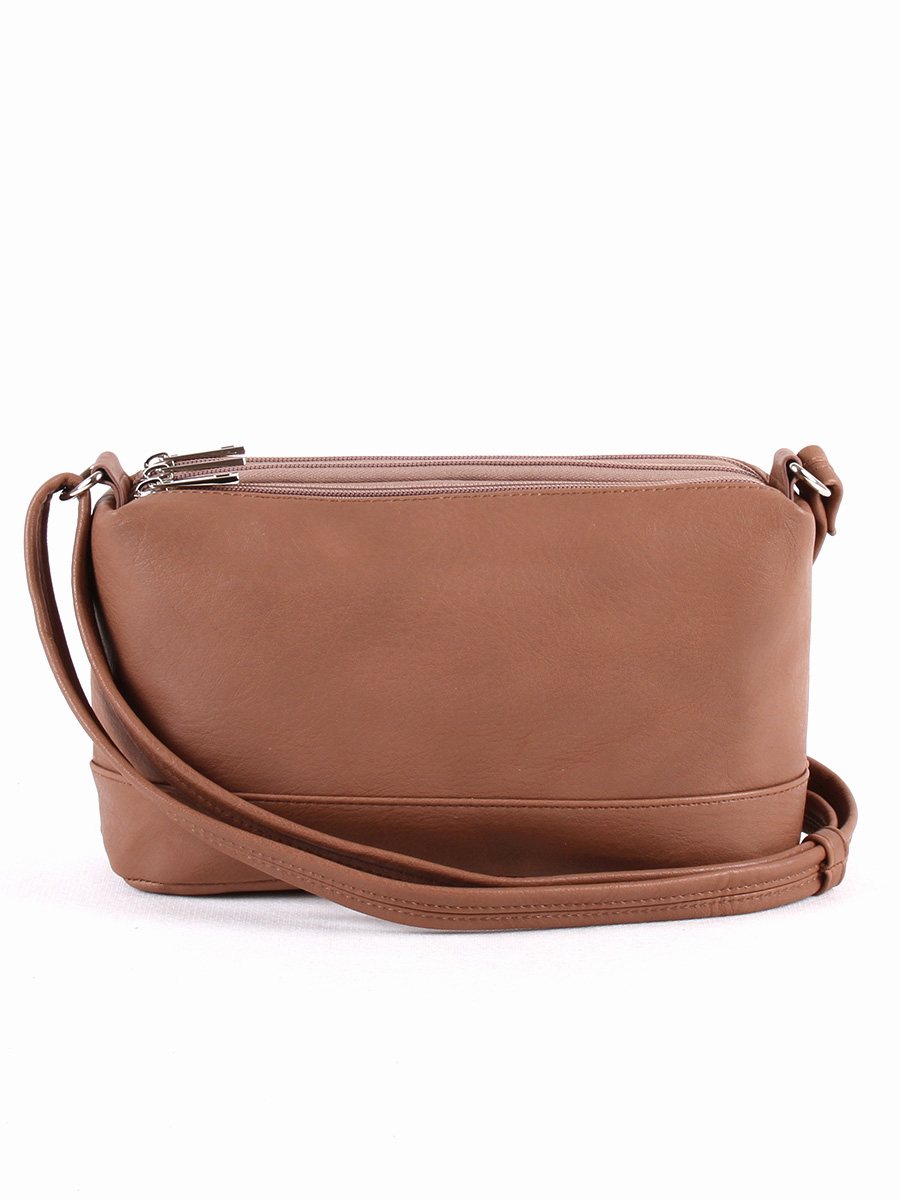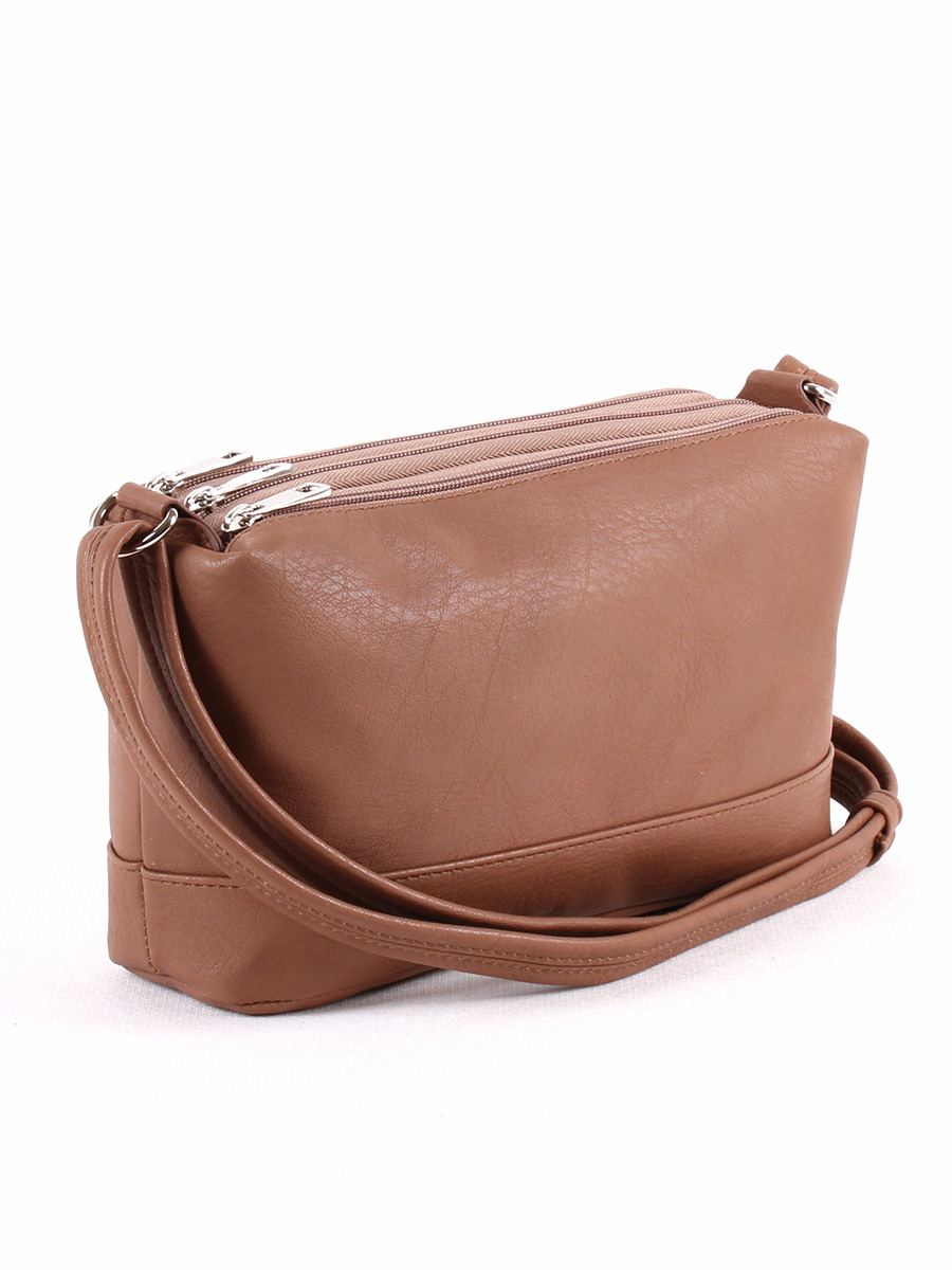 Сумка женская с тремя отделениями на молниях. Внутри-карман на молнии и карман для телефона. На задней стенке карман на молнии. Максимальная длина наплечного ремня 1360 мм.