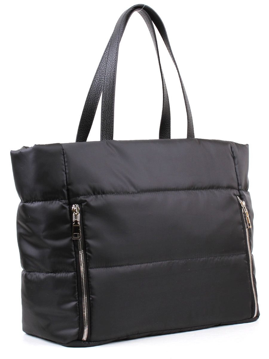 Сумка женская из текстильного материала, с одним отделением на молнии. На передней стенке два кармана намолнии. Внутри - открытый карман. Высота ручки  23 см.