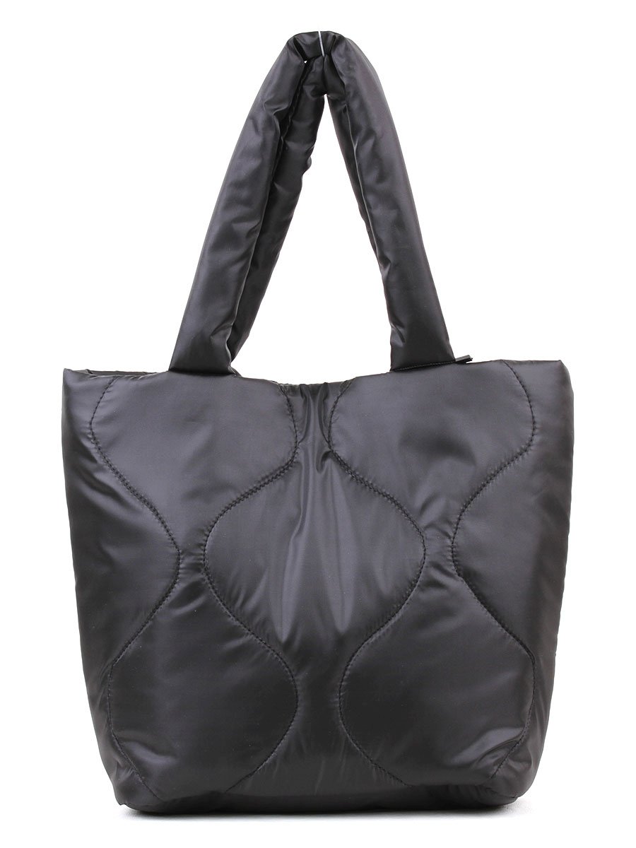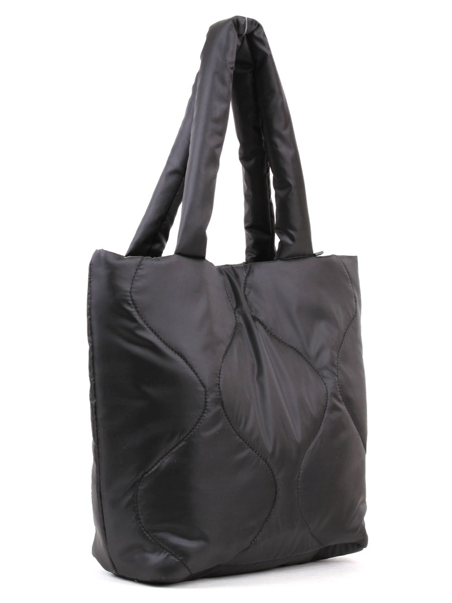 Мягкая женская сумка с одним отделением на кнопке. Внутри карман для документов и мелких принадлежностей. У сумки две ручки, не регулируемых, не съемных. Высота ручек 22 см, длина ручек 49 см.