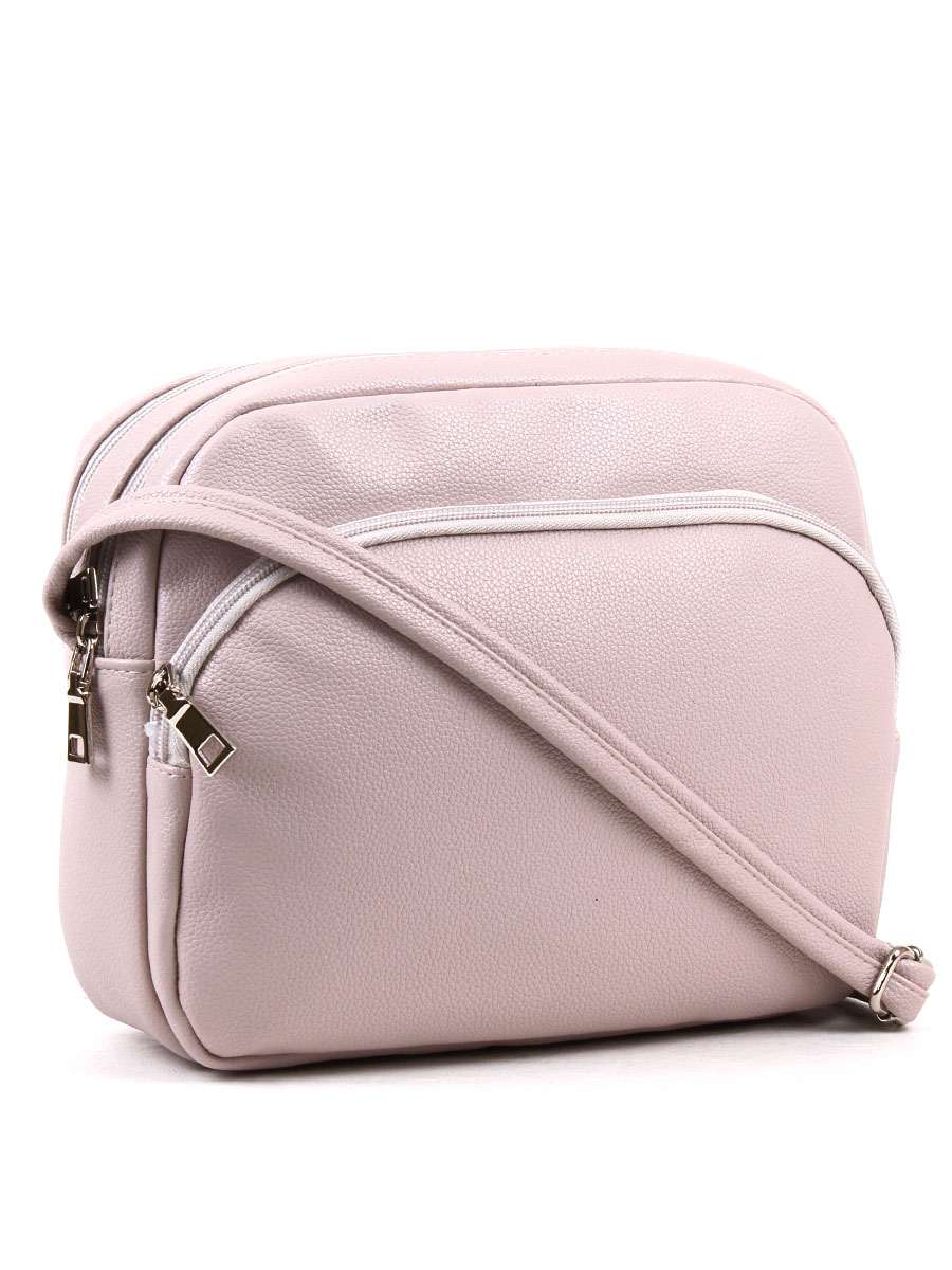 Сумка женская, кросс-боди, с регулируемой ручкой высотой до 60 см. Два независимых отделения закрываются на молнии, в одном из них - карман на молнии. На передней стенке - полукруглый вместительный карман на молнии.
