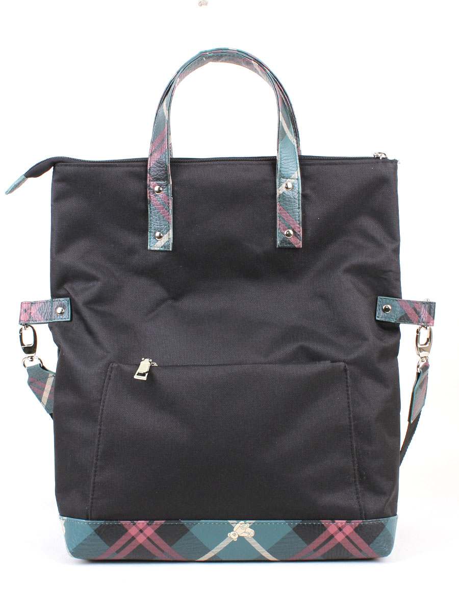 Женская сумка-трансформер на молнии. На передней стенке - два открытых кармана, на задрей стенке - накладной карман на молнии. Внутри карман на молнии. Вмещает формат А4.  Высота ручек 11 см. В сложенном виде можно носить на регулируемом съемном ремне (макс. длина 115 см).