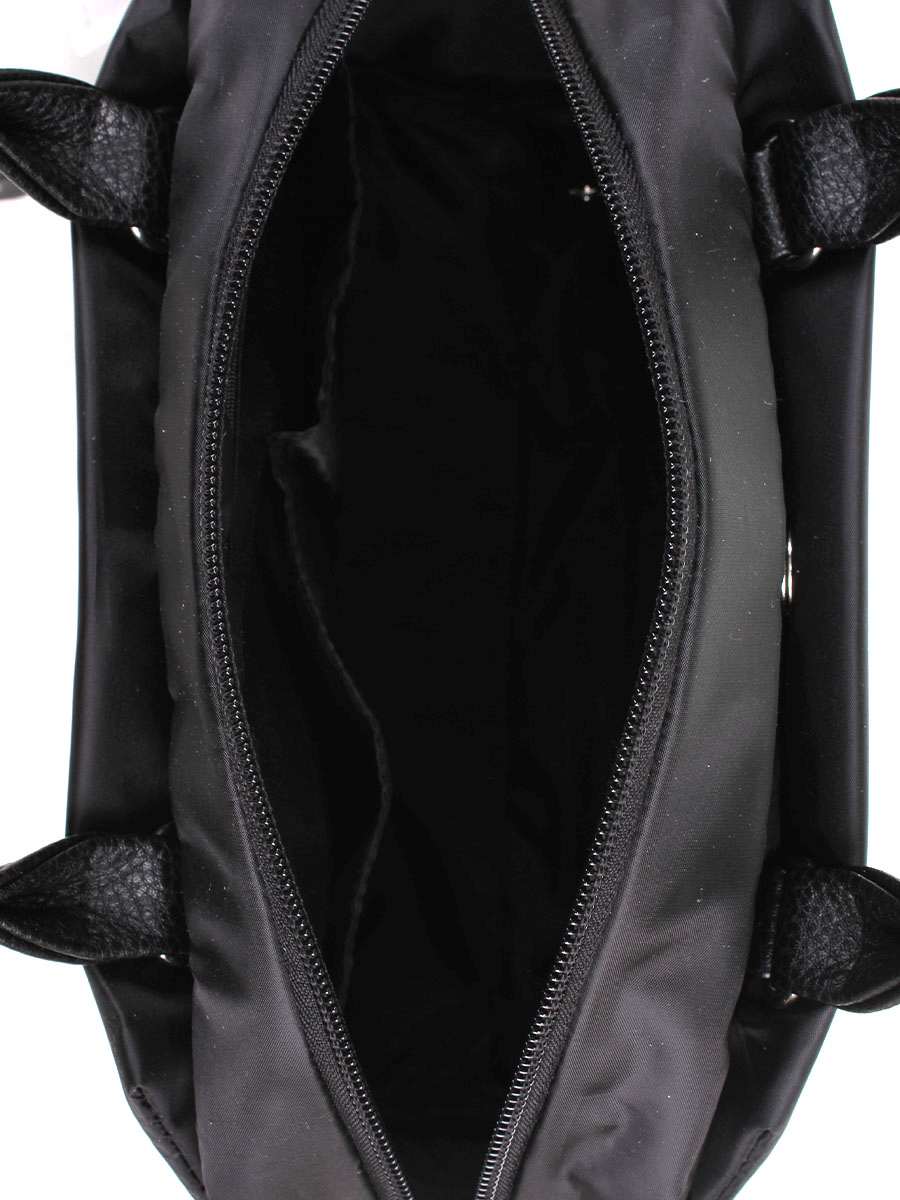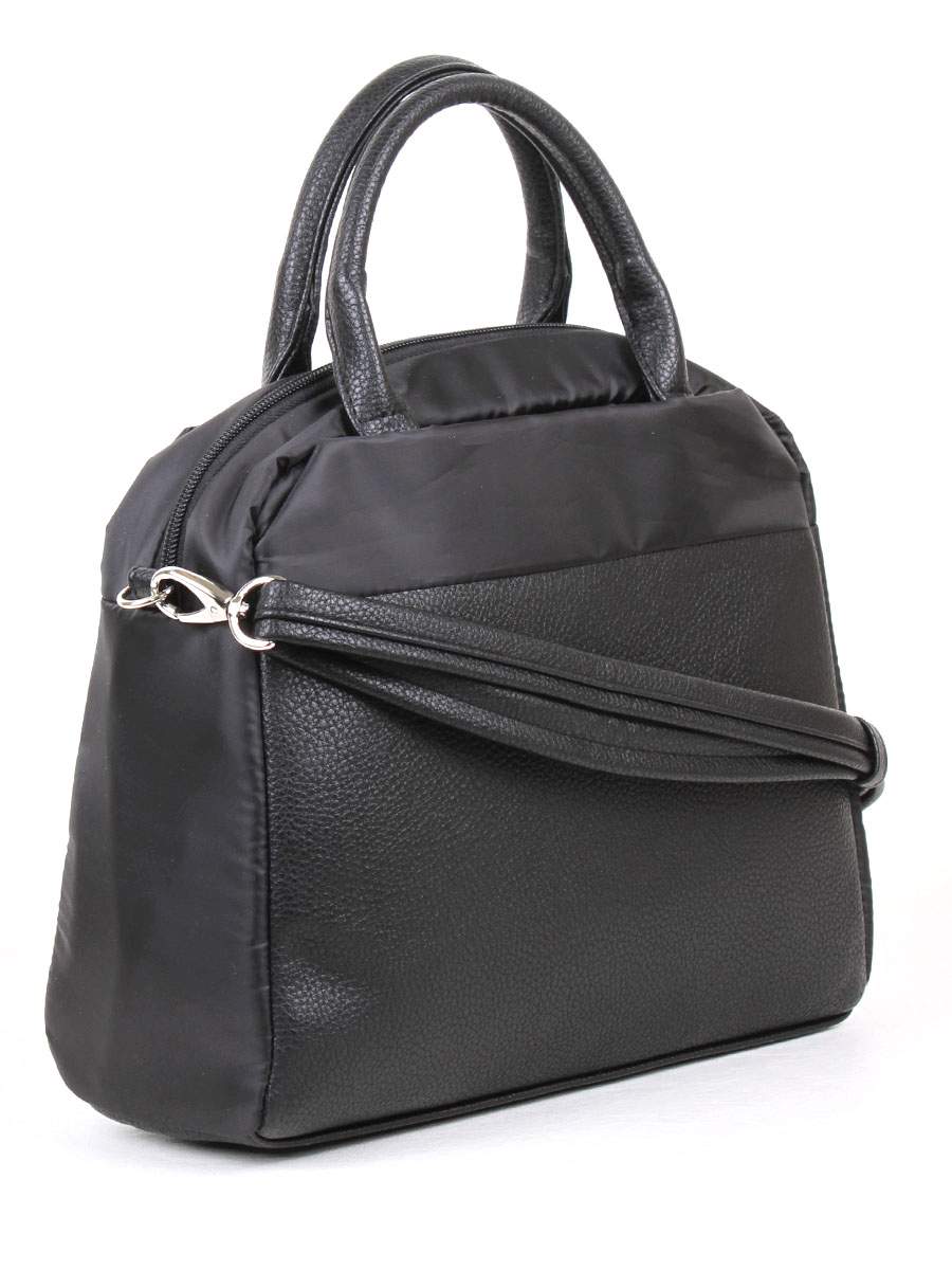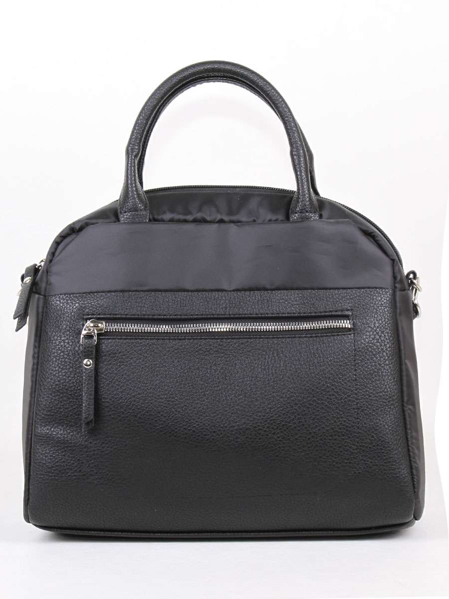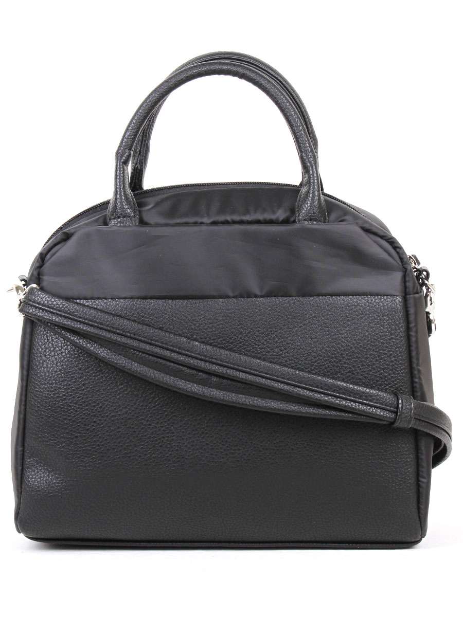 Женская сумка среднего формата, комбинированная из искусственной кожи и текстиля. Одно отделение на молнии. На передней и задней стенках - два глубоких кармана на магнитных кнопках. На передней стенке - карман на молнии. Внутри два открытых кармана и карман на молнии. Высота ручек 12 см. Съемный ремень регулируется по длине.