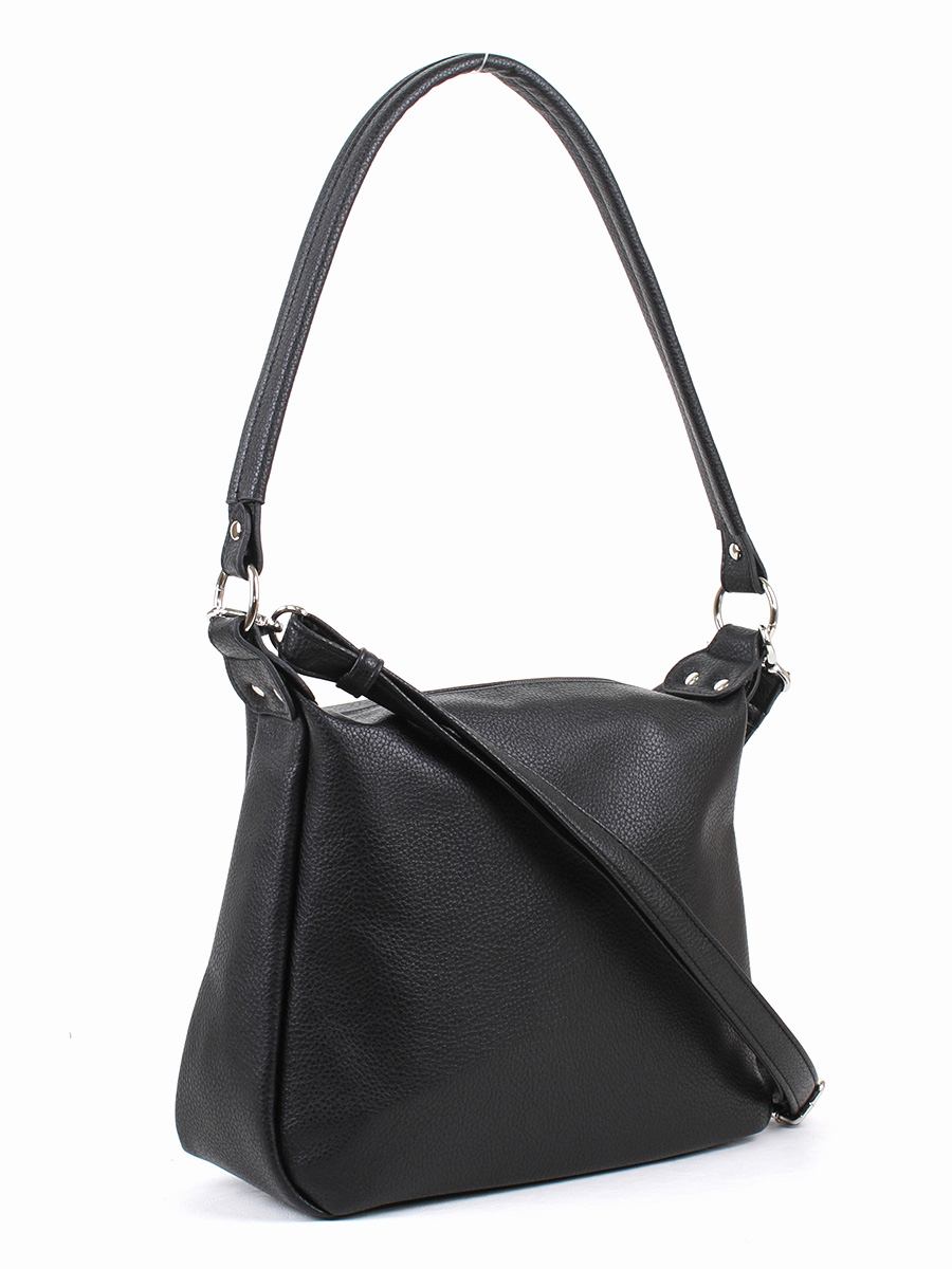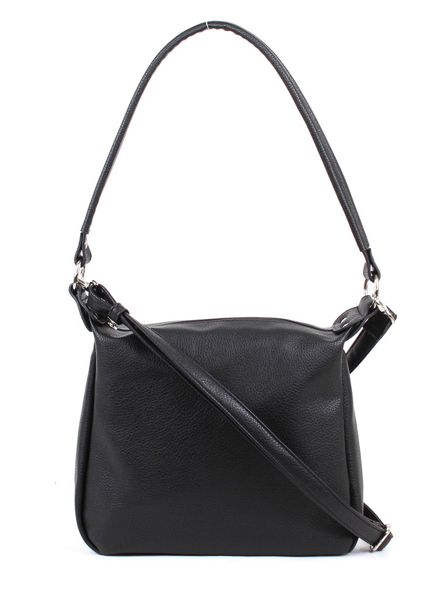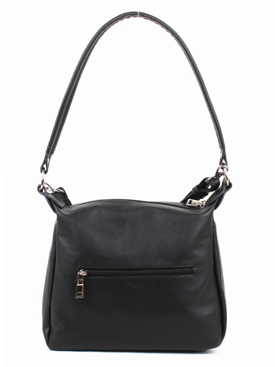 Сумка женская с одним отделением на молнии. На задней стенке - карман на молнии. Внутри также карман на молнии и два кармана для мелочей. Высота несьъемной ручки - 32 см. Съемный плечевой ремень регулируется по длине.