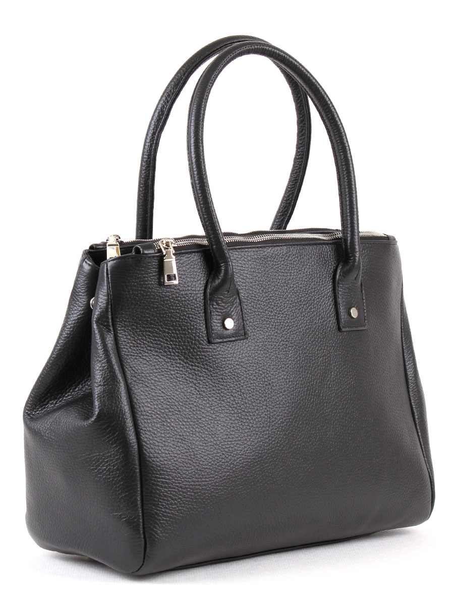 Сумка женская среднего формата. Три независимых отделения на молнии, среднее вмещает формат А4 и может увеличиваться за счёт боковых кнопок. Внутри два открытых кармана и карман на молнии. Высота ручек 16,5 см.