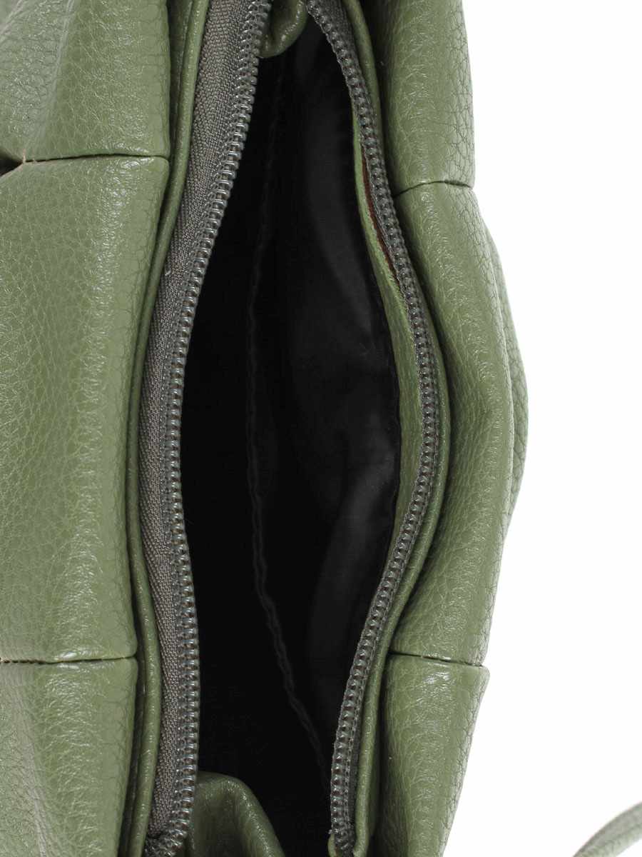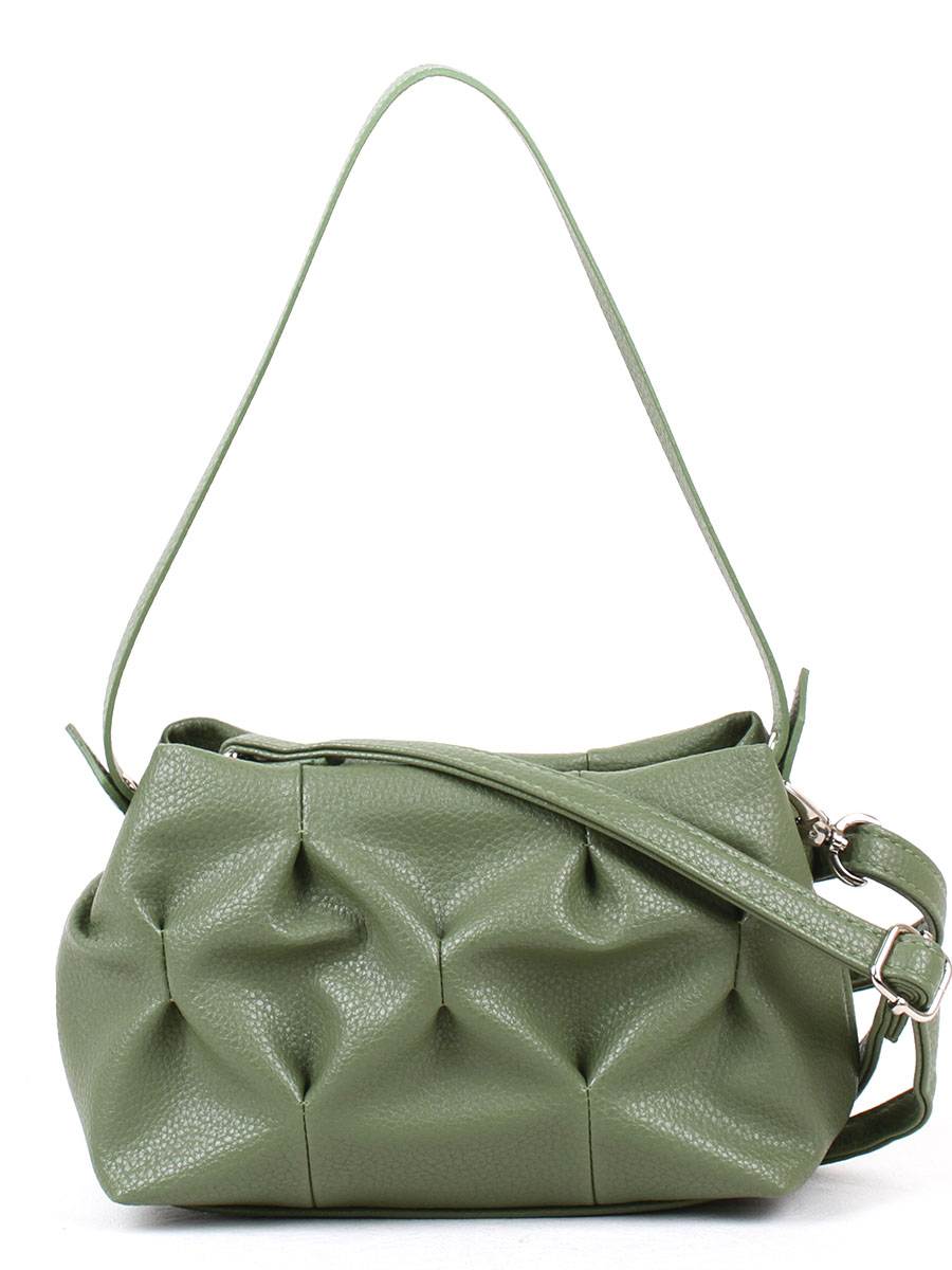 Женская сумочка на плечо с изящной драпировкой по передней и задней стенке. Внутри - два кармана на молнии. Высота ручки 22 см. Максимальная длина съемного ремня 130 см.