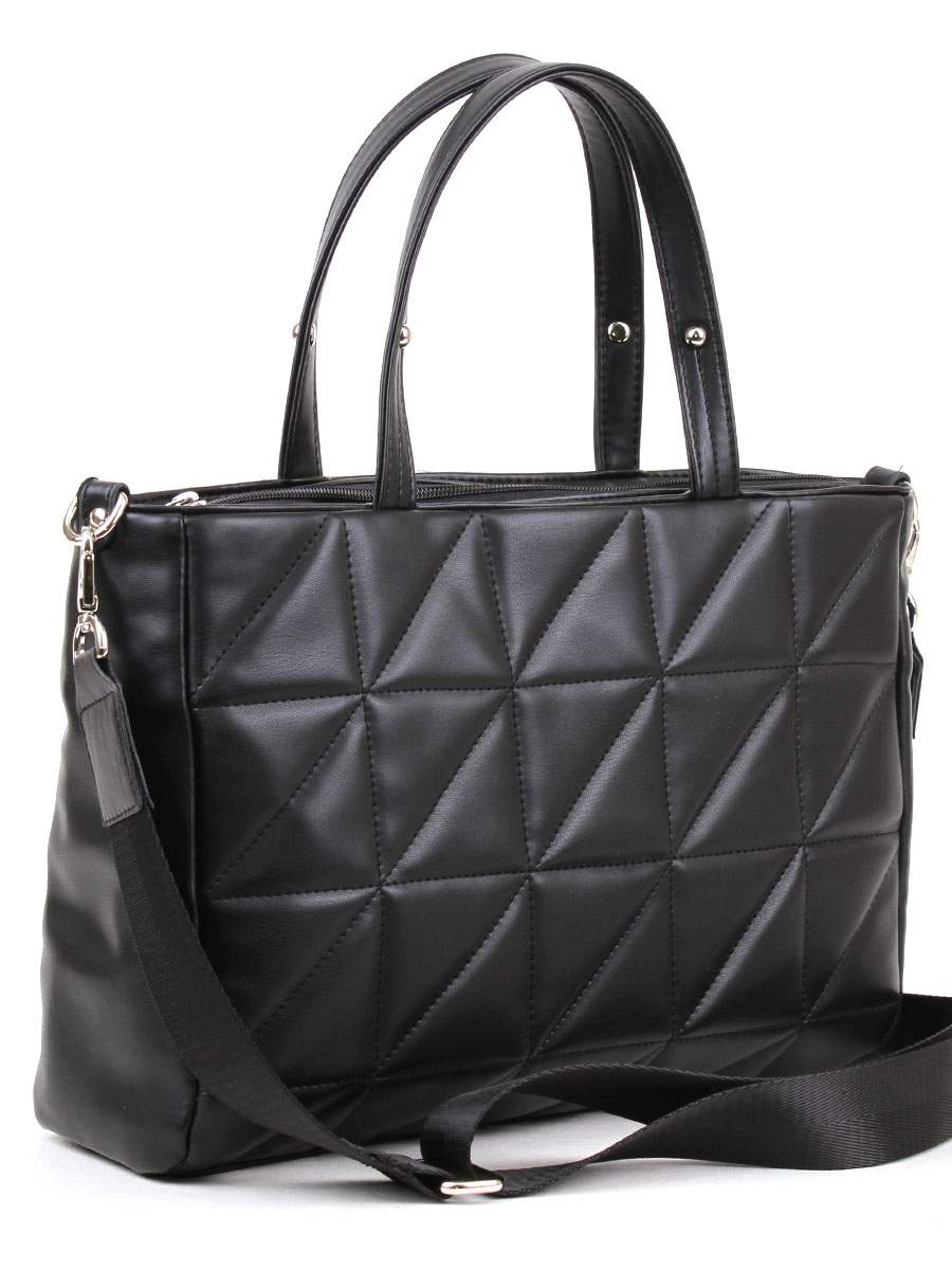 Сумка женская с одним отделением на молнии. На внутренних сторонах передней и задней стенки - врезные карманы на молнии для проездного и мелочей. Внутри перегородка на молнии и два открытых кармана для мелких принадлежностей. У сумки две ручки, не регулируемых, не съемных. Высота ручки 17 см, длина ручек 40 см. Максимальная длина регулируемого, съемного плечевого ремня 110 см.