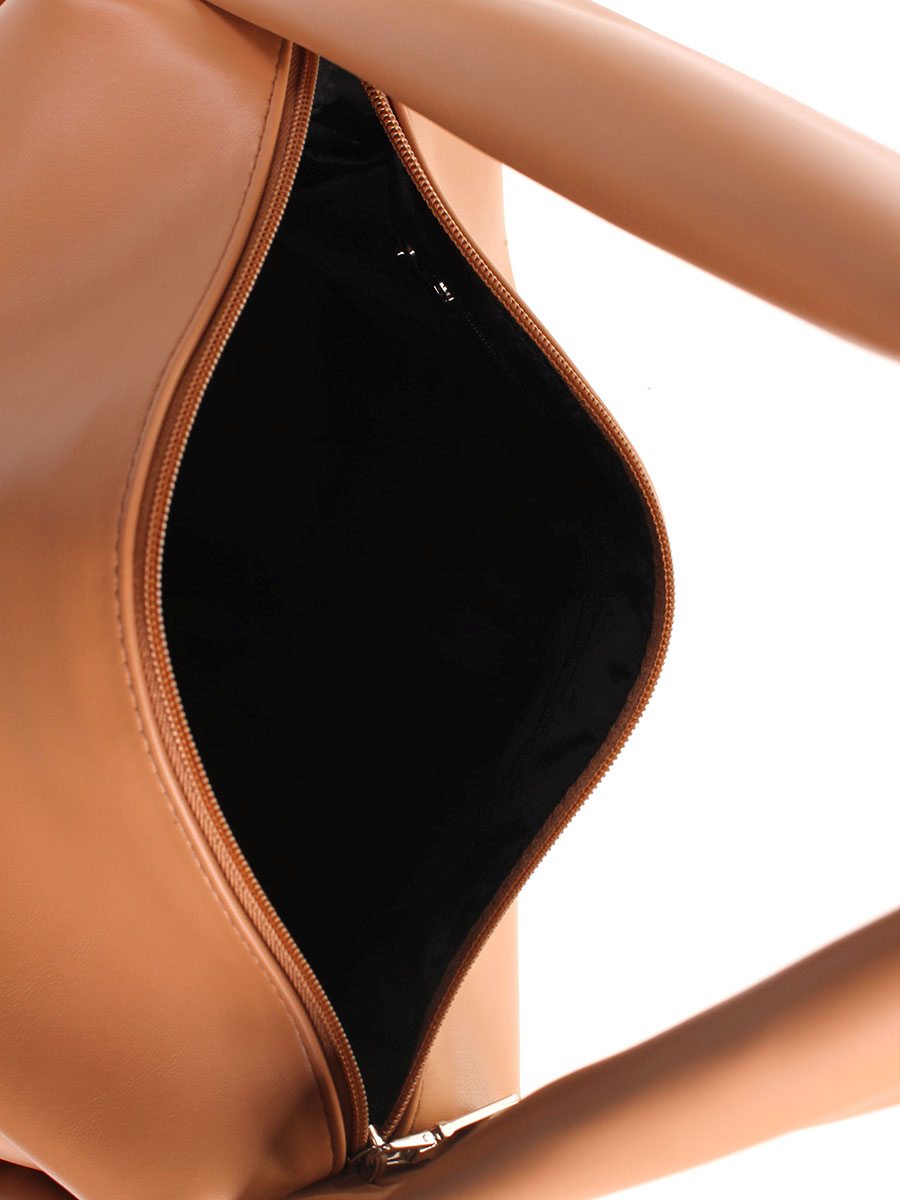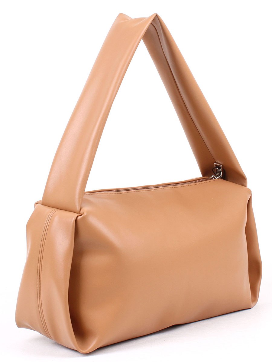 Мягкая женская сумка, имеет одно вместительное отделение, которое закрывается на молнию.  Можно носить в руке или на плече. Внутри - два вместительных кармана: один на молнии , второй открытый.  Высота ручки 21 см.