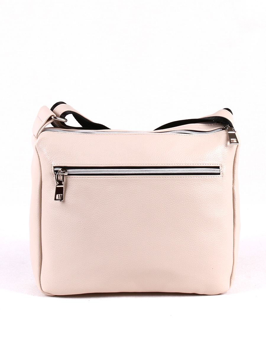 Женская сумочка квадратной формы. Два отделения на молниях. На передней стенке - 2 кармана на молнии, на задней - один карман. Внутри два открытых кармана и карман на молнии для документов. Вмещает тетрадь формата А5. Максимальная высота регулируемой ручки 65 см.