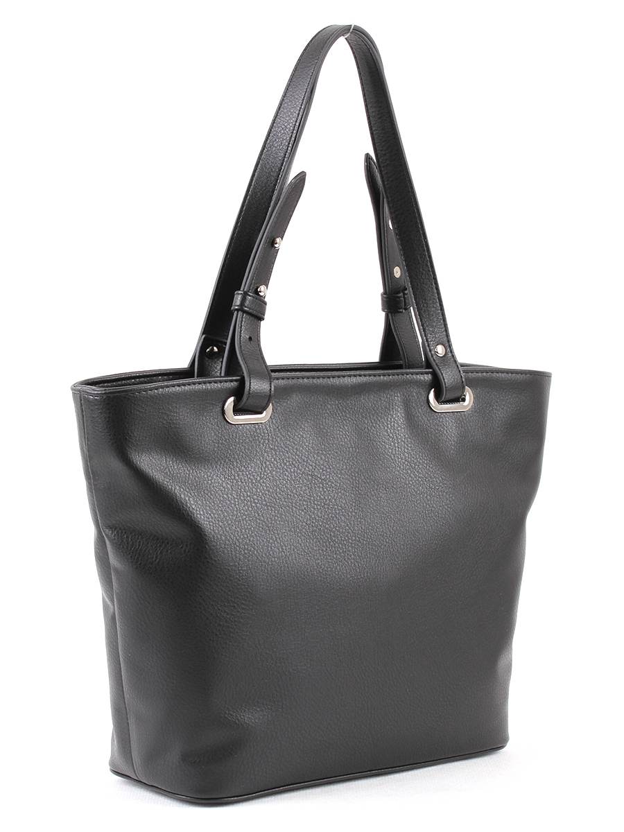 Сумка женская с одним отделением на молнии и карманом на магнитной кнопке. На задней стенке - карман на молнии. Внутри - перегородка на молнии, карман на молнии, два открытых кармана. Высота ручек - 23 см.