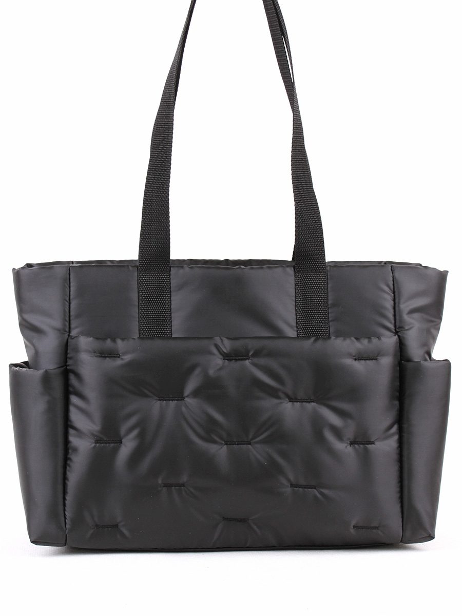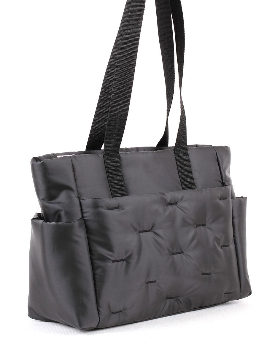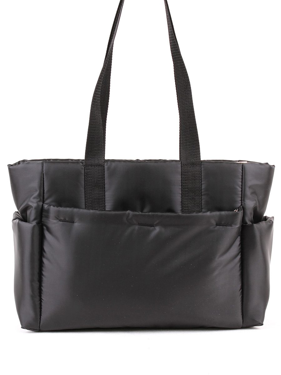 Текстильная женская сумка с одним отделением на молнии. На передней и задней стенке - два скрытых кармана на молнии. Открытые карманы по бокам. Внутри - карман на молнии и два открытых кармана. Высота ручек 30 см.