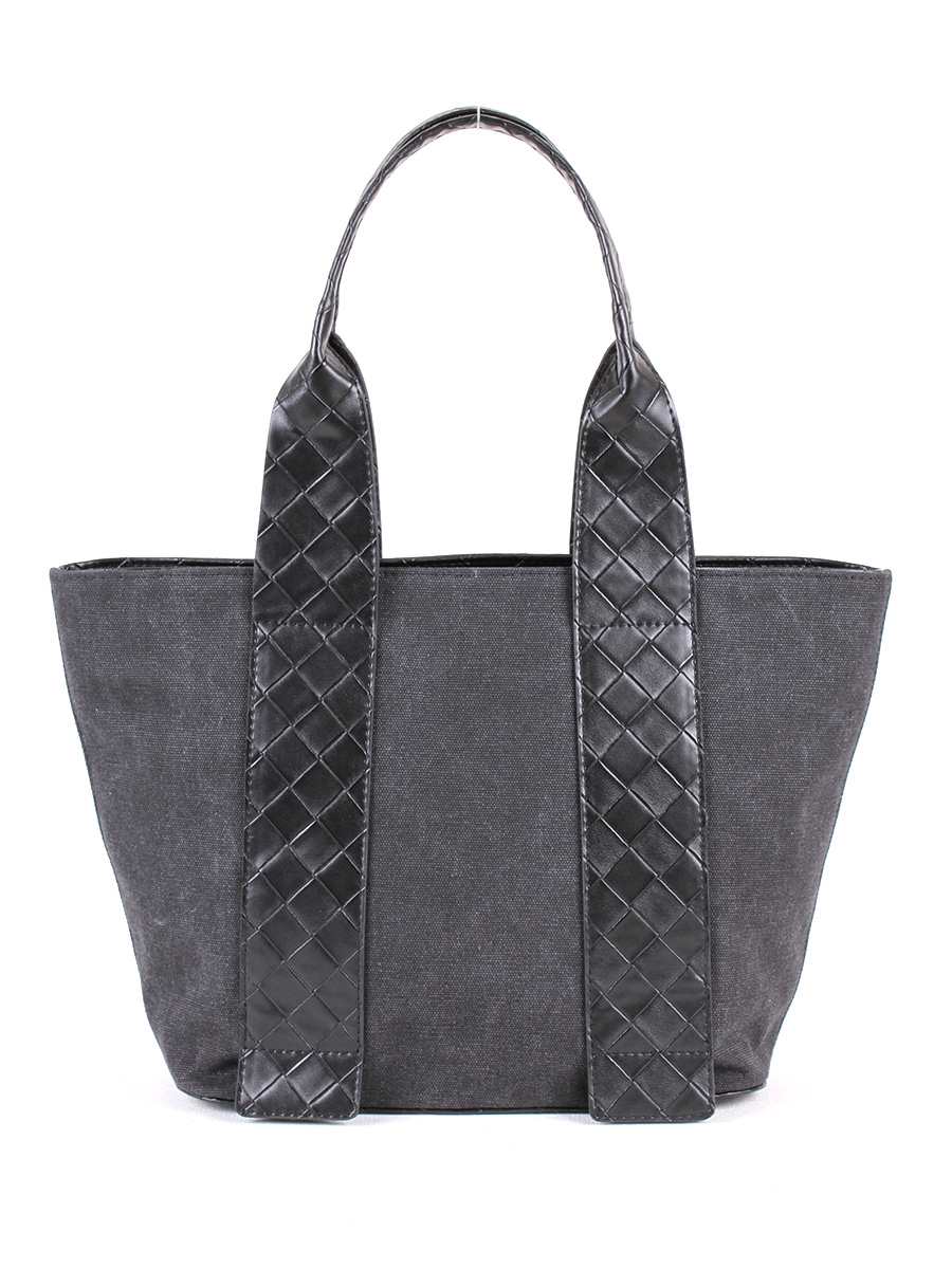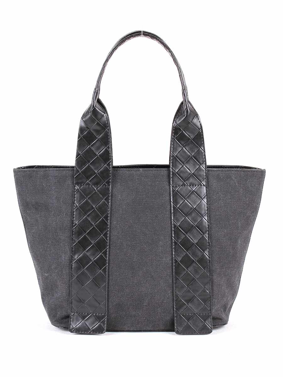 Сумка женская из текстильного материала с отделкой из натуральной кожи. Одно отделение на молнии. Внутри - карман на молнии и два открытых кармана для мелочей. Две ручки высотой 21 см.