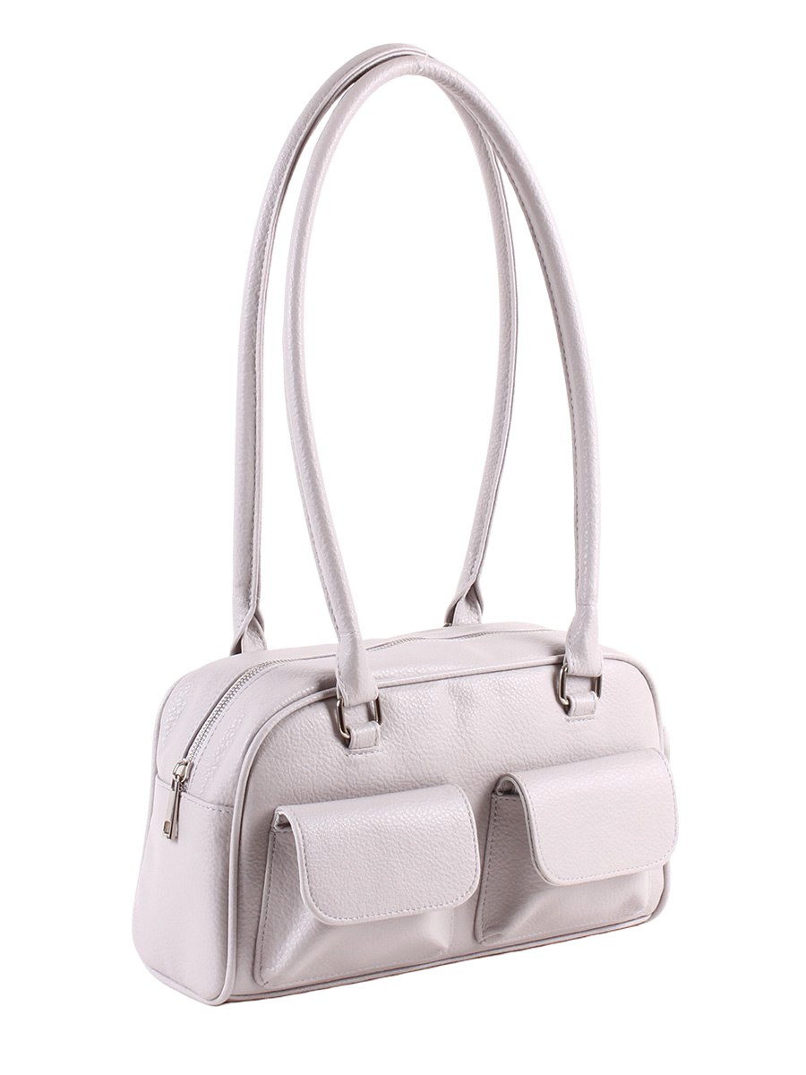 Сумка женская с одним отделением на молнии. На передней стенке - два накладных кармана, закрывающихся на магнитные кнопки. На задней стенке - карман на молнии. Внутри - открытый карман для для сотового, карман на молнии. Две ручки высотой 32 см.