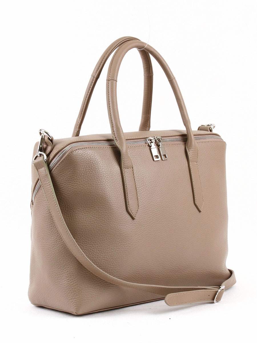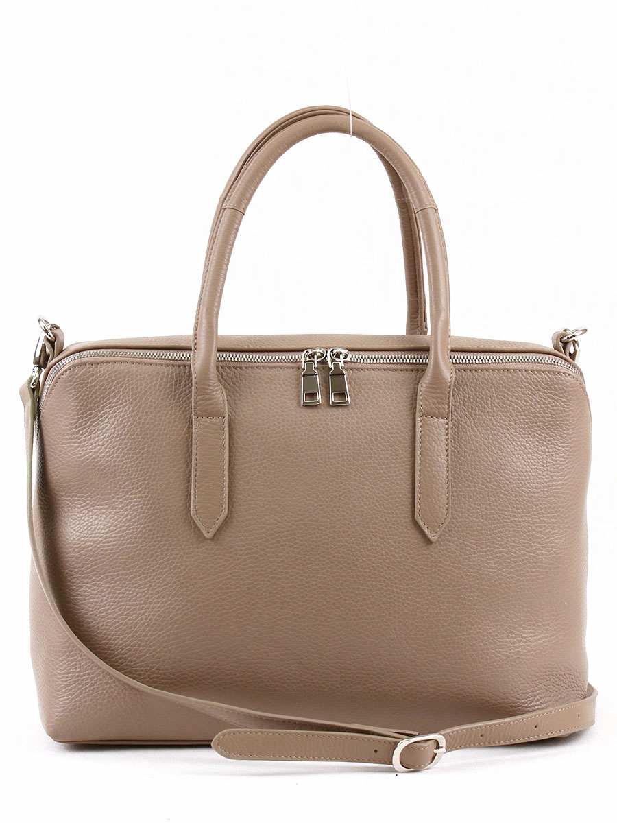 Сумка женская из натуральной кожи с одним отделением на молнии. Вмещает формат А4. На задней стенке - карман на молнии. Внутри - два открытых кармана и карман на молнии. Высота ручек - 20 см. Съемный регулируемый ремень.