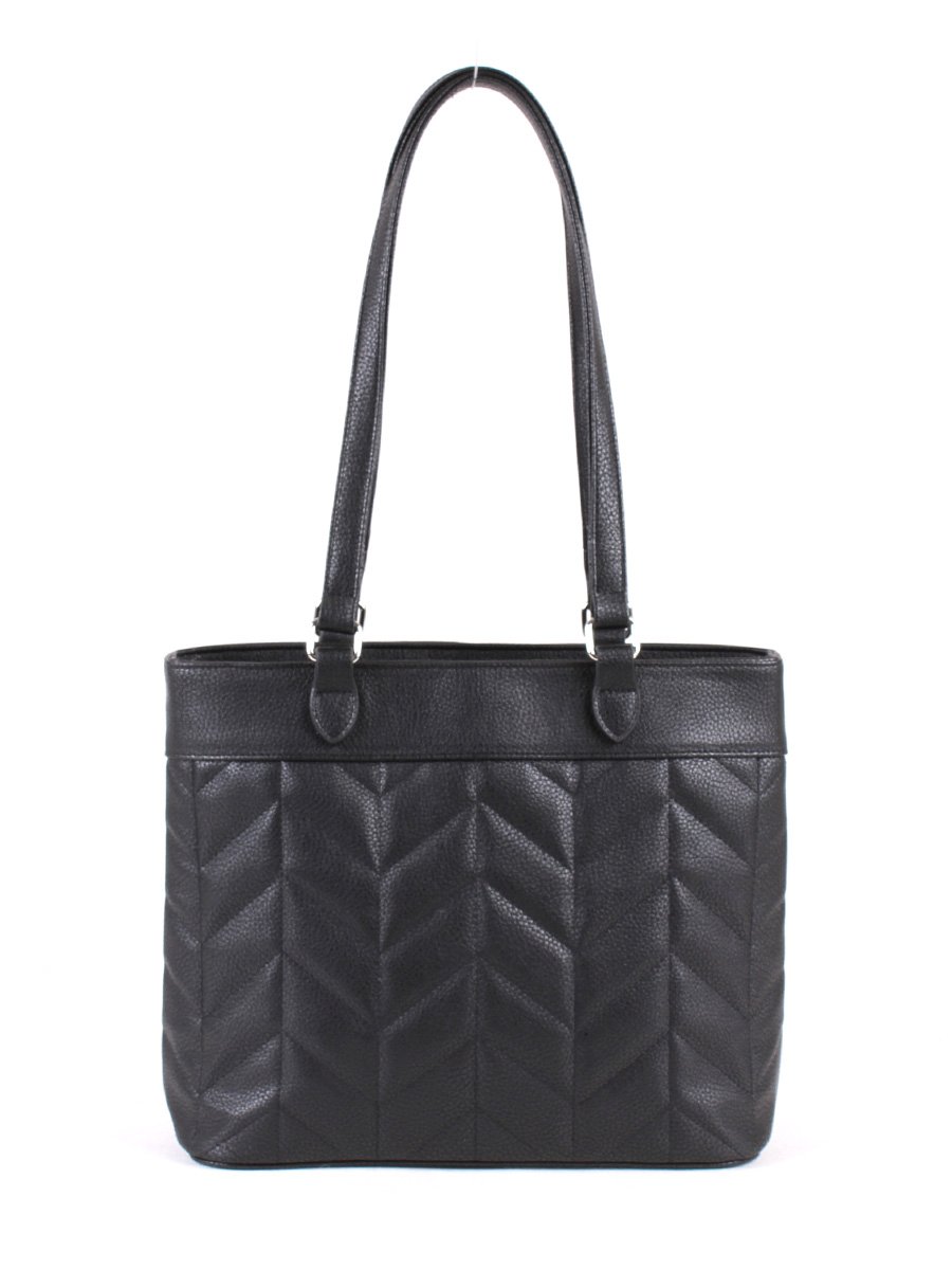 Сумка женская с одним отделением на молнии. Передняя стенка украшена отстрочкой. На задней стенке - карман на молнии. Внутри - карман на молнии для документов и два открытых кармана для мелочей. Высота ручек - 30 см.