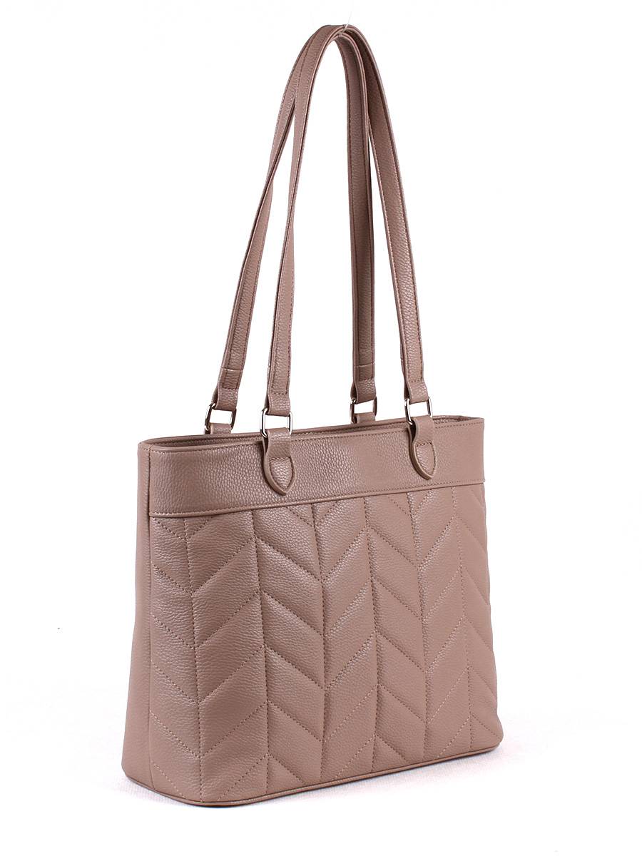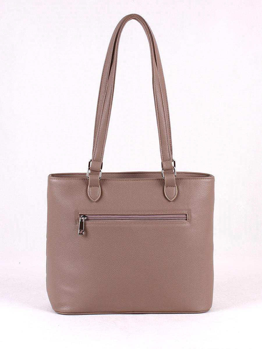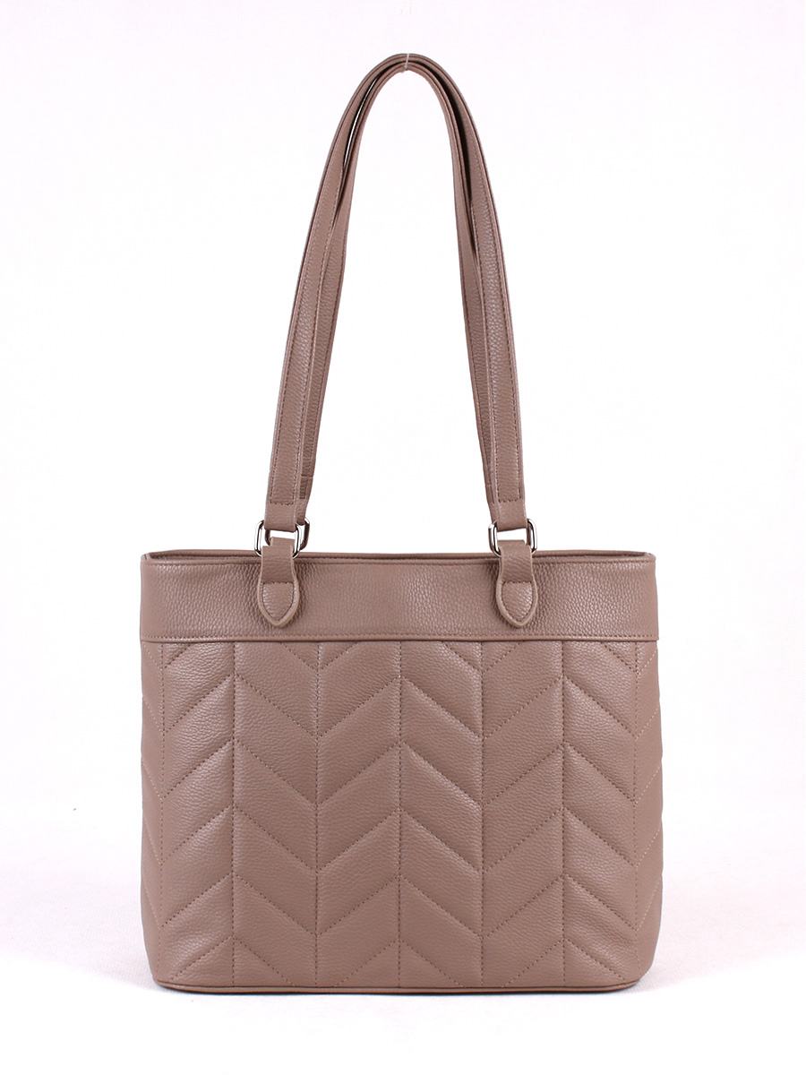 Сумка женская с одним отделением на молнии. Передняя стенка украшена отстрочкой. На задней стенке - карман на молнии. Внутри - карман на молнии для документов и два открытых кармана для мелочей. Высота ручек - 30 см.
