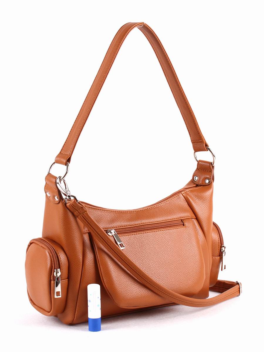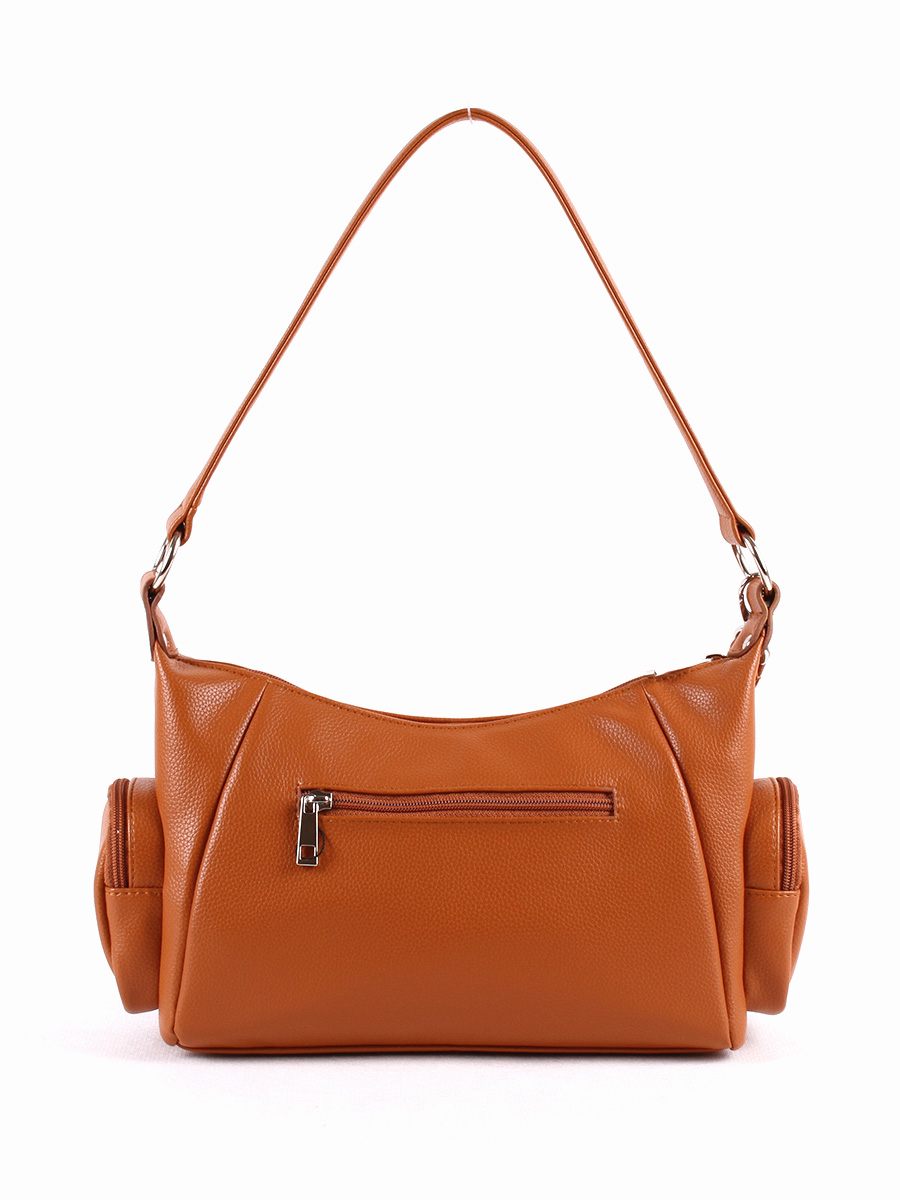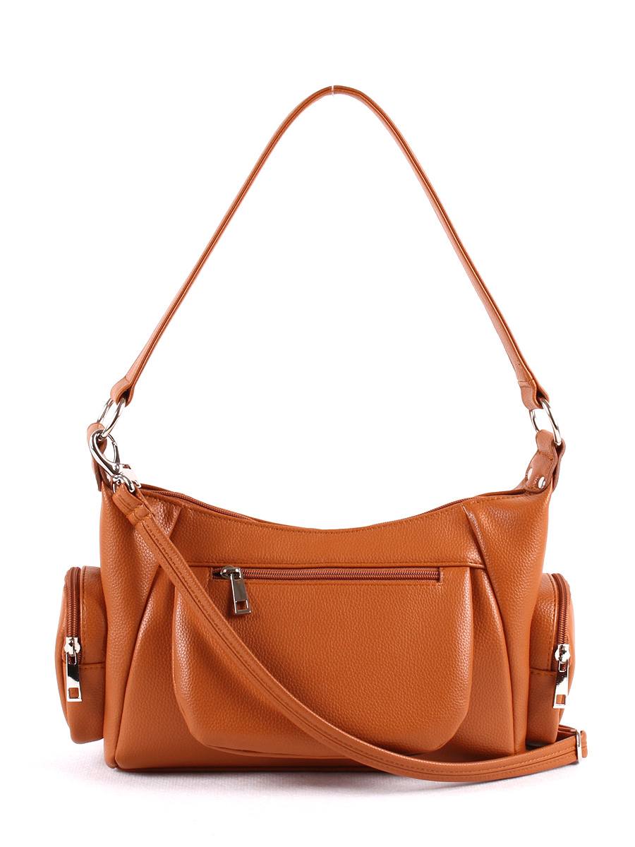 Сумка женская с одним отделением на молнии. На передней стенке - карман на молнии, декоративный клапан на магнитной кнопке. По бокам - овальные накладные карманы на молнии. На задней стенке - карман на молнии. Внутри - карман на молнии. Высота ручки - 29 см. Максимальная длина съемного регулируемого ремня - 145 см.