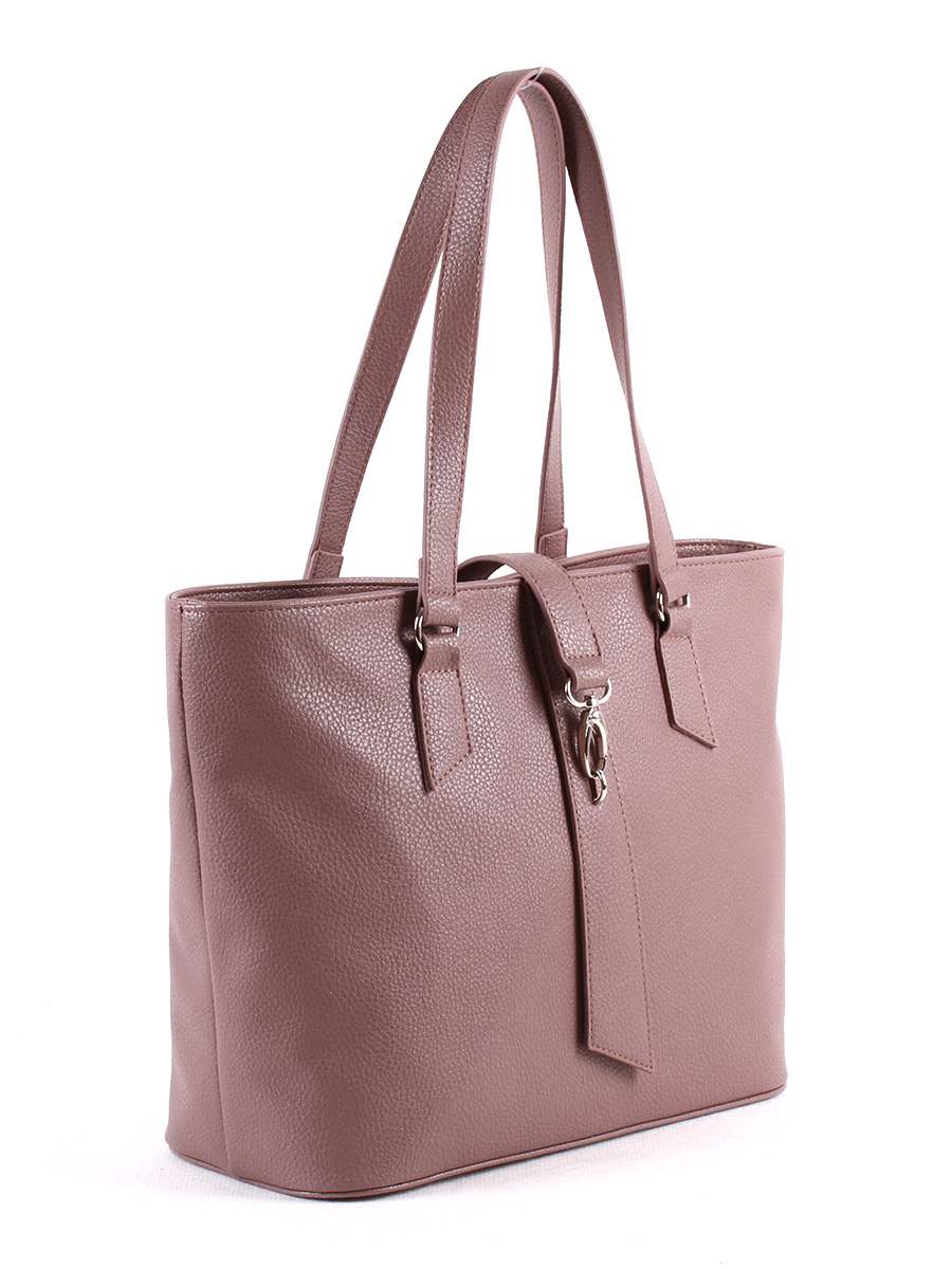 Сумка женская с одним отделением на молнии. Дополнительно закрывается декоративной накладкой-гортом на карабине. На задней стенке - карман на молнии. Внутри - карман на молнии, два открытых кармана для мелочей. Высота ручек - 25 см.