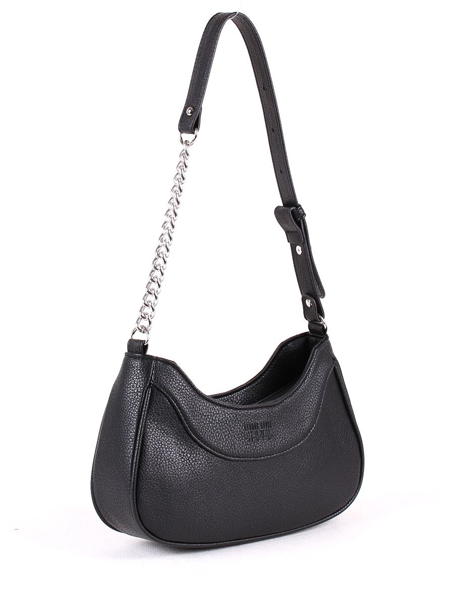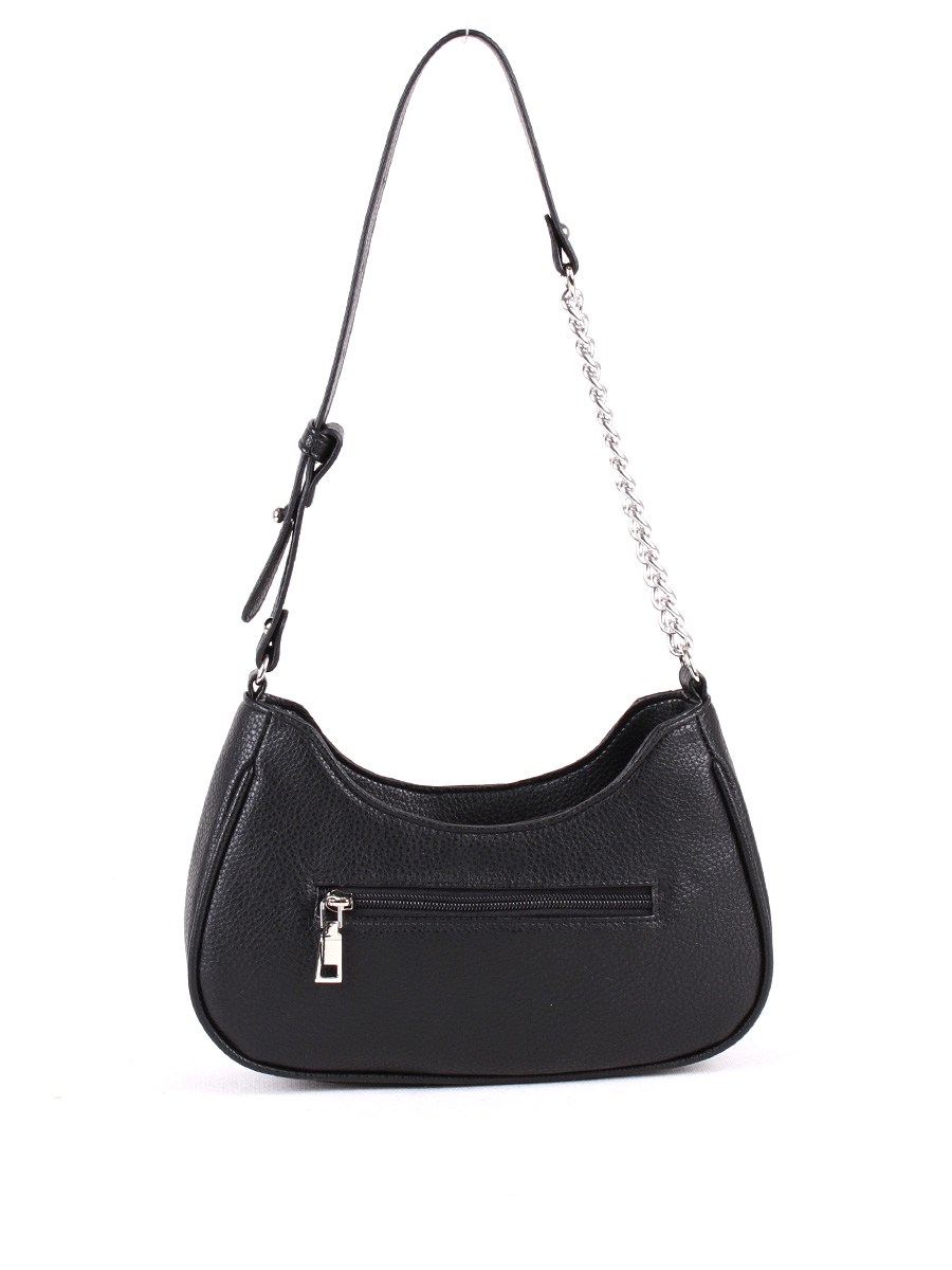 Сумка женская на плечо с одним отделением на молнии. На задней стенке - карман на молнии. Внутри - перегородка на молнии, открытый карман для мелочей и карман на молнии. Ручка из искуственной кожи комбинирована с цепочкой, регулируется по высоте от 26 до 35 см.