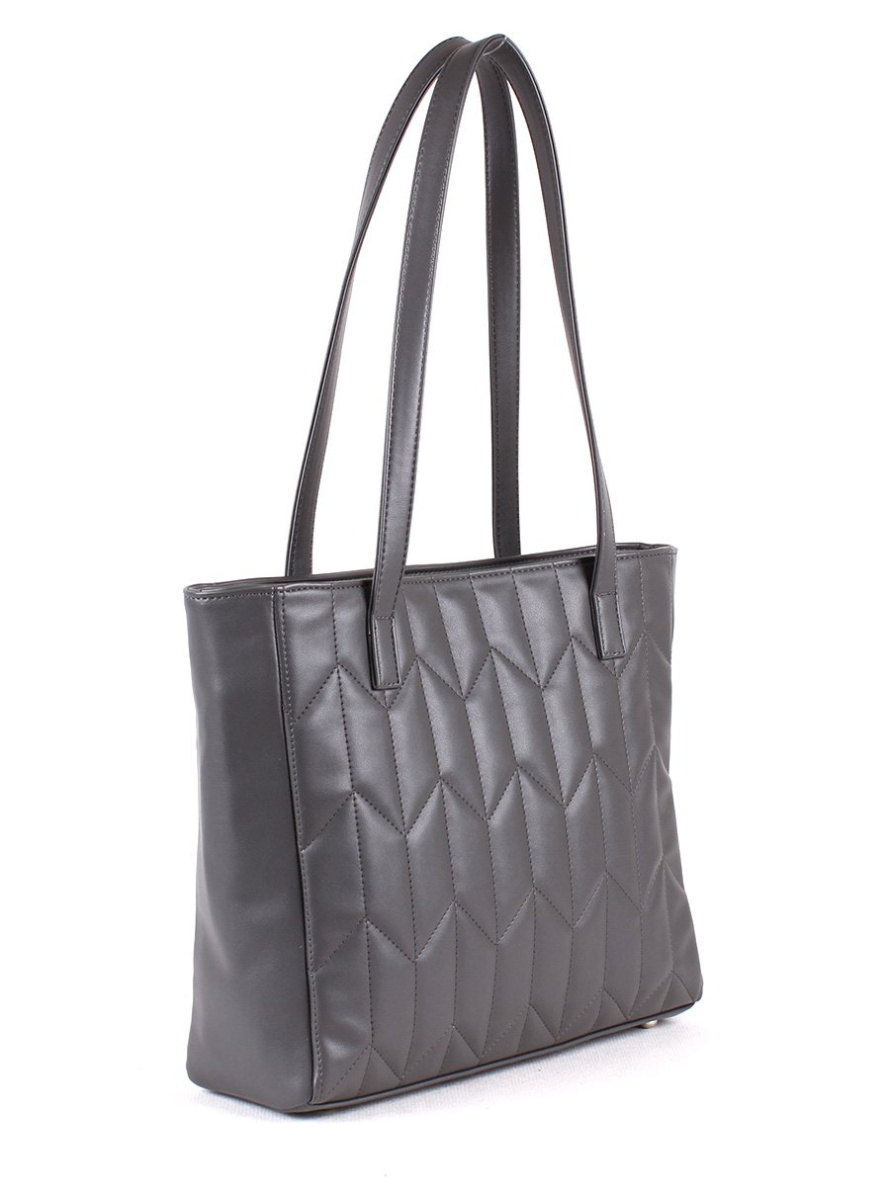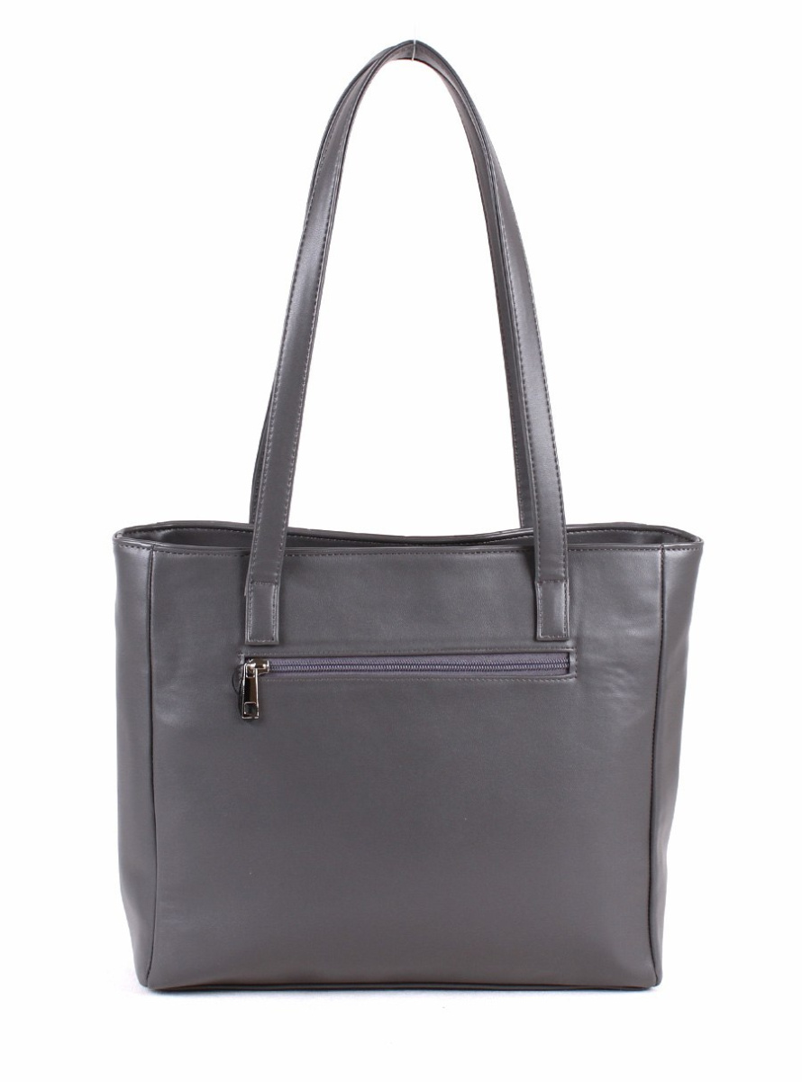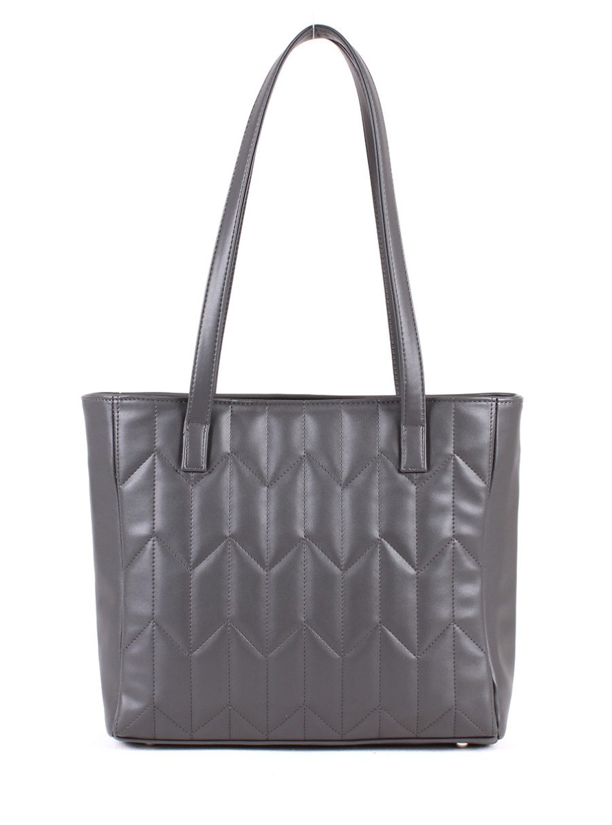 Сумка женская с одним отделением на молнии. Вмещает формат А4. Передняя стенка украшена стёжкой. На задней стенке - карман на молнии. Внутри - два открытых кармана и карман на молнии. На дне - металлические ножки-пукли. Две ручки высотой 30 см.
