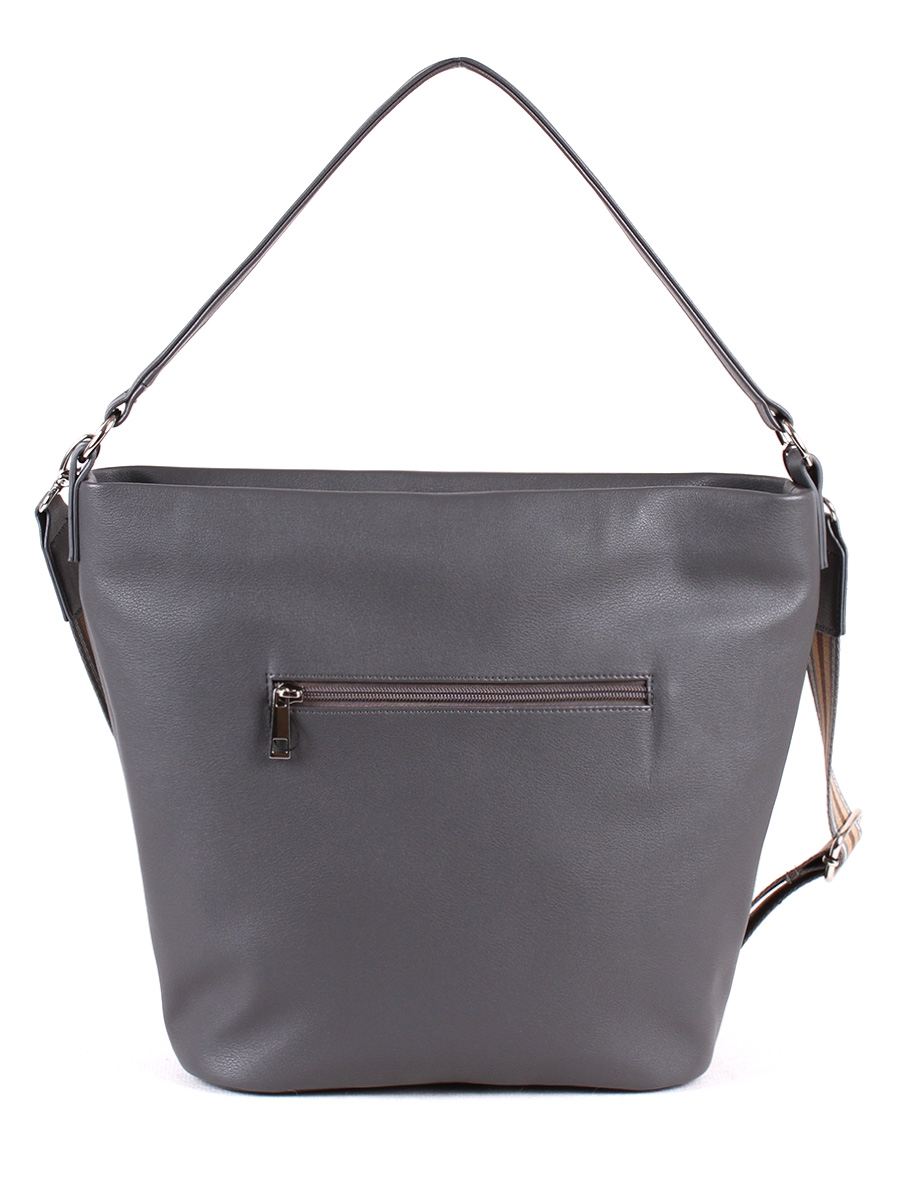 Сумка женская трапециевидной формы с одним отделением на молнии. На задней стенке - карман на молнии. Внутри - два открытых кармана и карман на молнии. Ручка высотой 20 см. Съемный регулируемый ремень-тесьма.