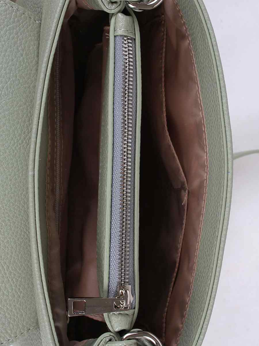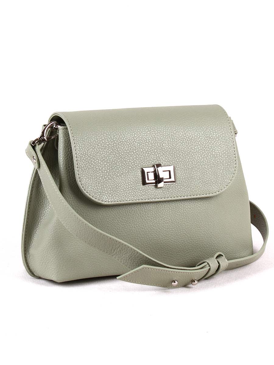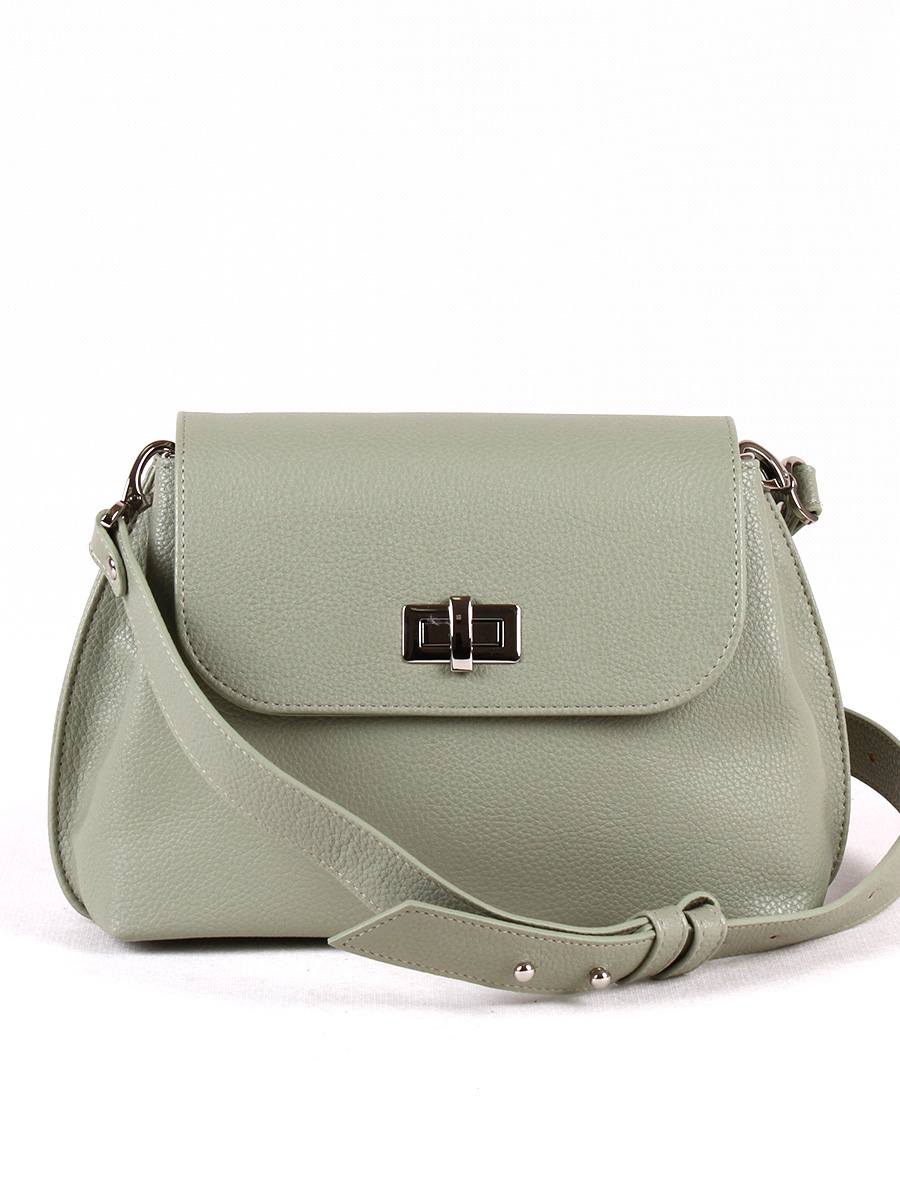 Сумка женская с одним отделением, закрывается клапаном на замок-вертушок. На задней стенке - карман на молнии. Внутри - перегородка на молнии, два открытых кармашка для мелочей, карман на молнии для документов. У сумки плечевой ремень, съемный, регулируемый, длина 100 см.