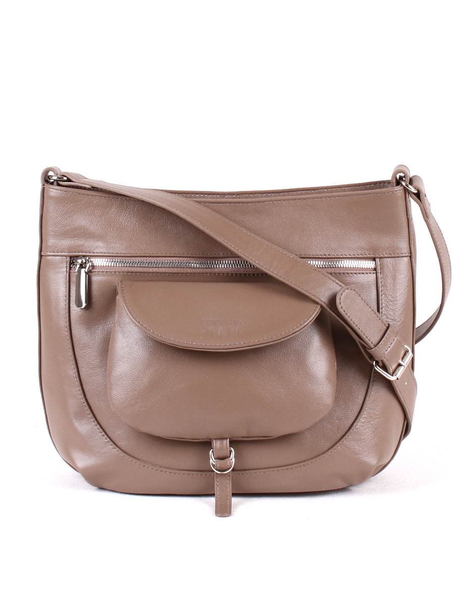 Сумка женская с одним отделением на молнии. На передней стенке - овальный накладной карман с клапаном и карман на молнии. На задней стенке - карман на молнии. Внутри - карман на молнии для документов и открытый карман для телефона или мелочей. Несьёмная ручка регулируется по высоте от 45 до 51 см