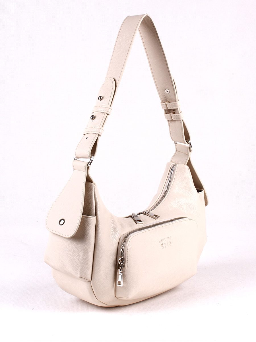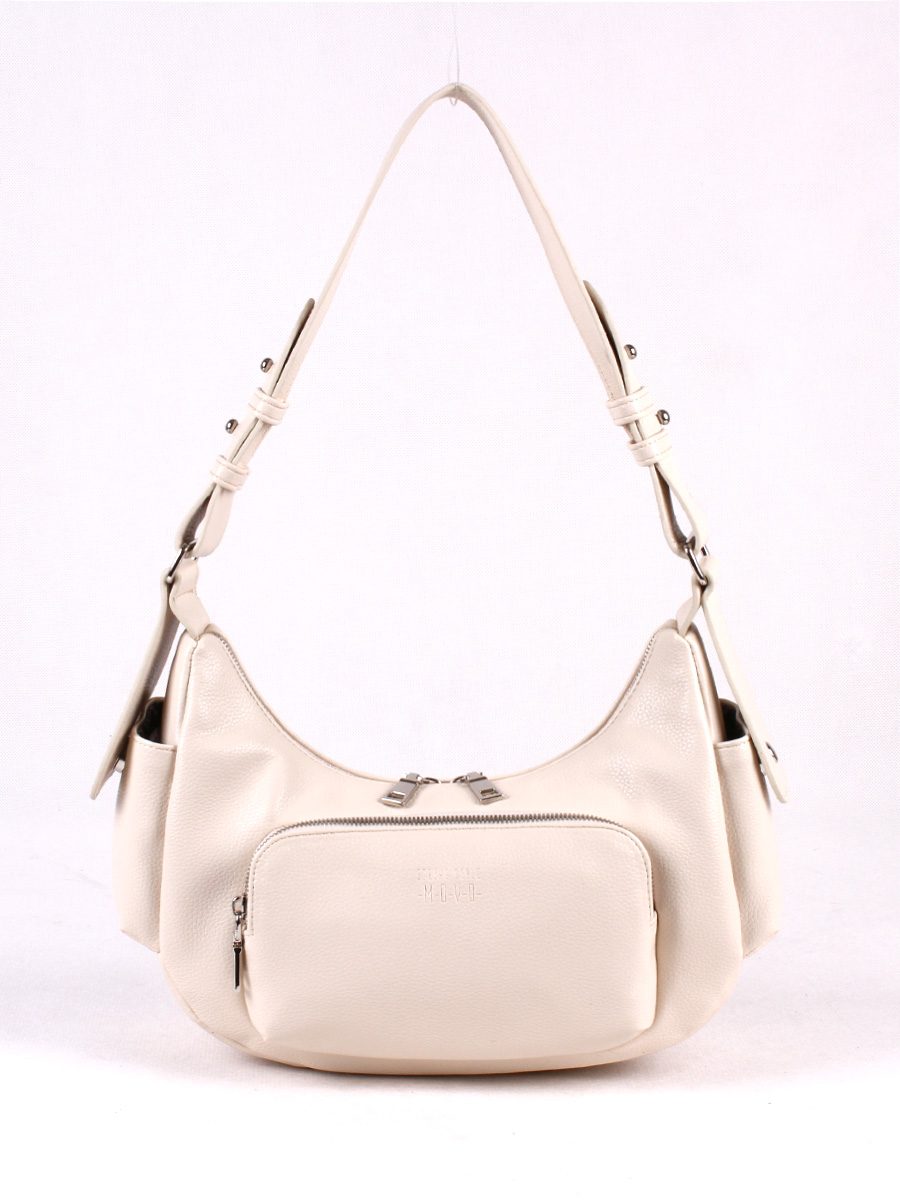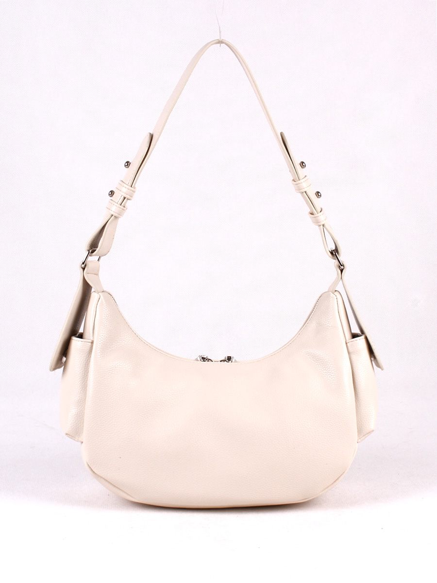 Сумка женская с одним отделением на молнии. На передней стенке - накладной карман на молнии, по бокам - карманы под клапаном на магнитной кнопке. Внутри - карман на молнии и открытый карман для сотового телефона. Максимальная высота регулируемой ручки - 33 см.