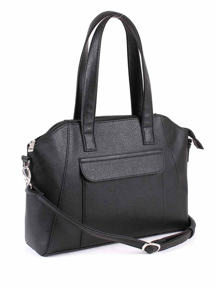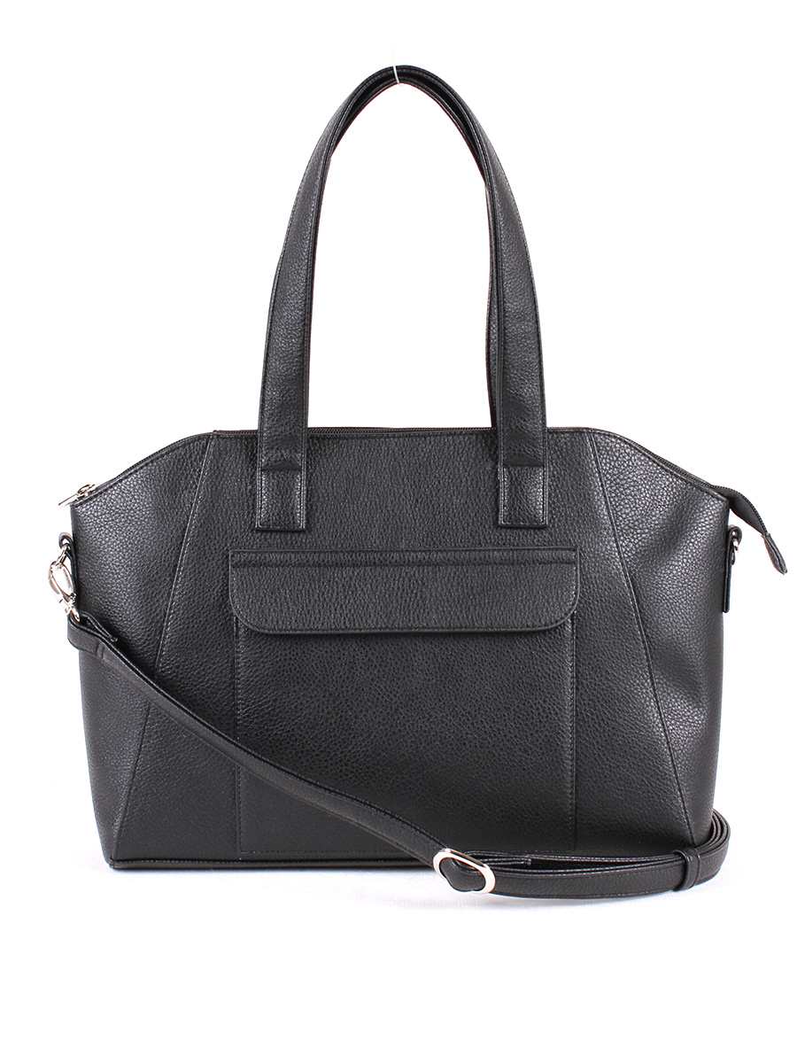 Сумка женская с одним отделением на молнии. Вмещает формат А4. На передней стенке - карман под клапаном.На задней - карман на молнии. Внутри два открытых кармана для мелочей, открытый карман для планшета, два кармана на молнии. Две ручки высотой 21 см. Съемный регулируемый ремень.