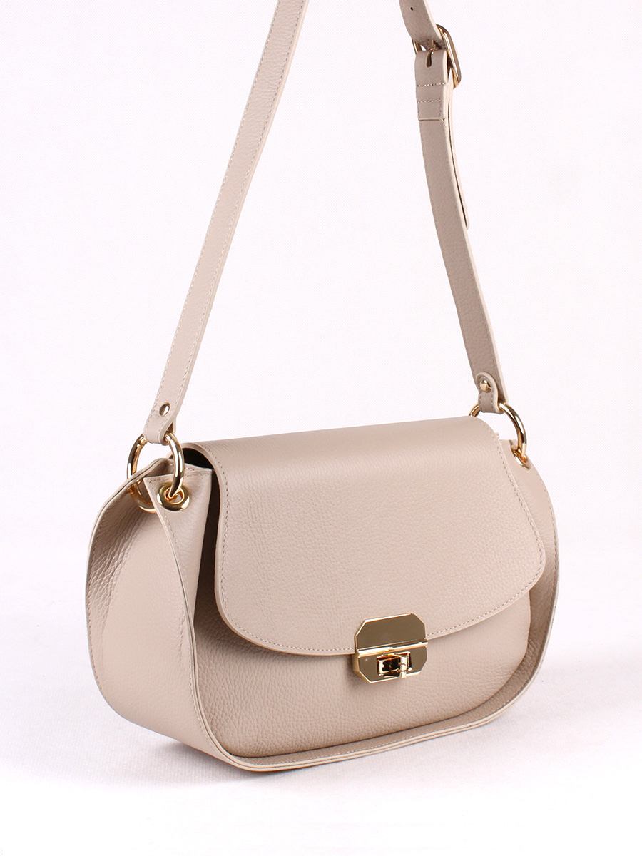 Сумка женская с одним отделением. Закрывается на клапан с замком-вертушком. На задней стенке - карман на молнии. Внутри - карман на молнии, карман для сотового телефона. Ручка на плечо регулируется по высоте от 35 до 40 см.