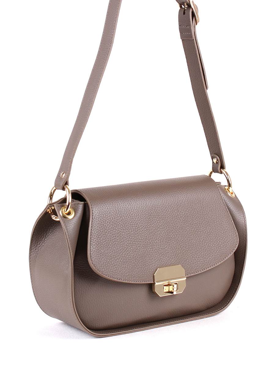Сумка женская с одним отделением. Закрывается на клапан с замком-вертушком. На задней стенке - карман на молнии. Внутри - карман на молнии, карман для сотового телефона. Ручка на плечо регулируется по высоте от 35 до 40 см.