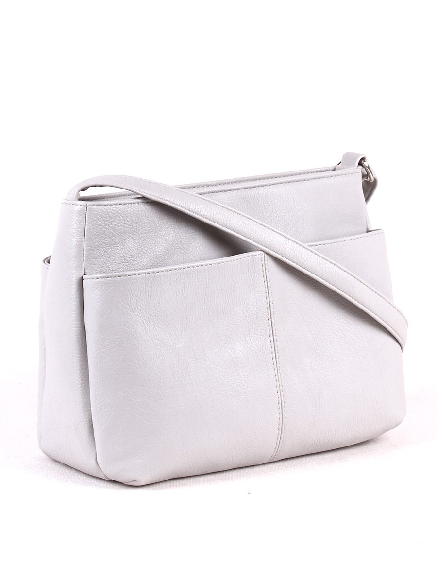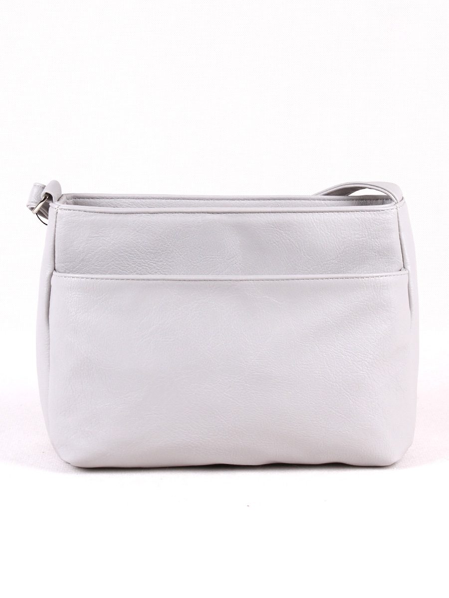 Сумка женская с одним отделением на молнии. На передней и задней стенке - скрытые карманы на молнии. Внутри - карман на молнии и два открытый кармашка для мелочей. Максимальная высота несъёмного регулируемого ремня - 62 см.