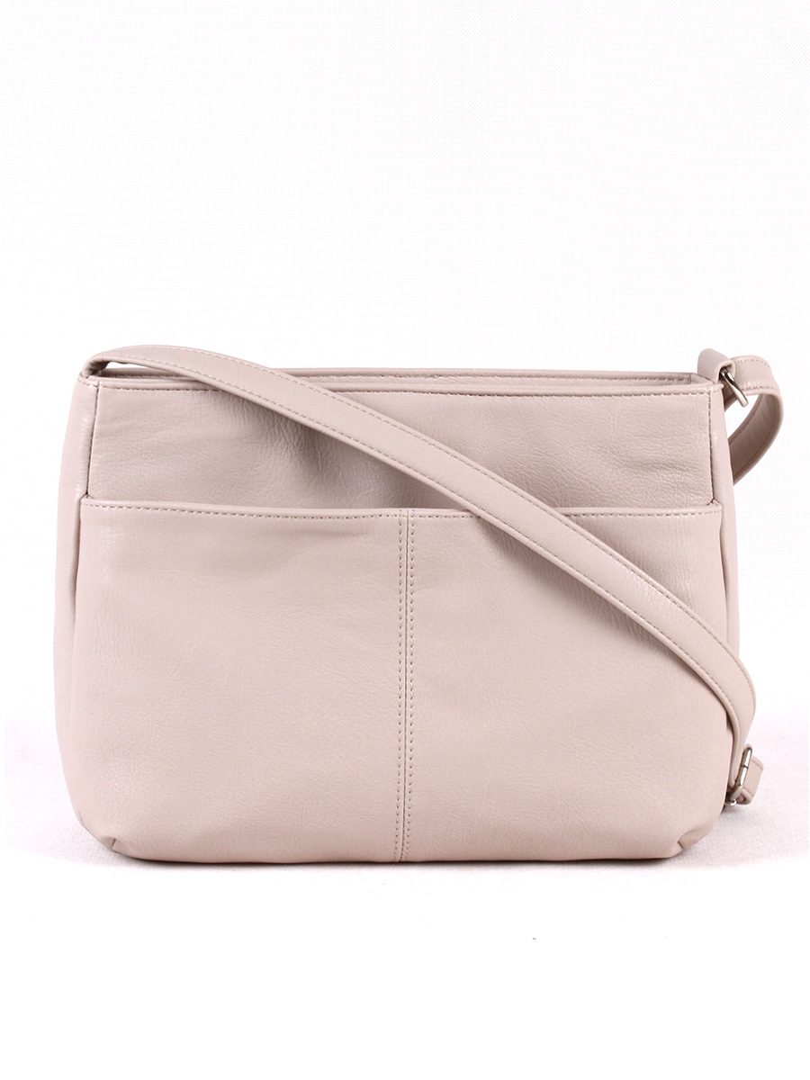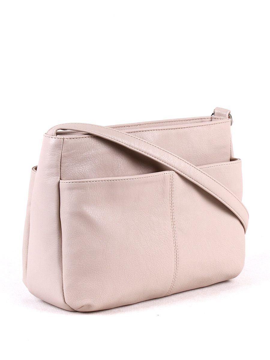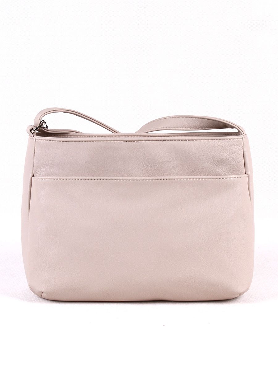 Сумка женская с одним отделением на молнии. На передней и задней стенке - скрытые карманы на молнии. Внутри - карман на молнии и два открытый кармашка для мелочей. Максимальная высота несъёмного регулируемого ремня - 62 см.