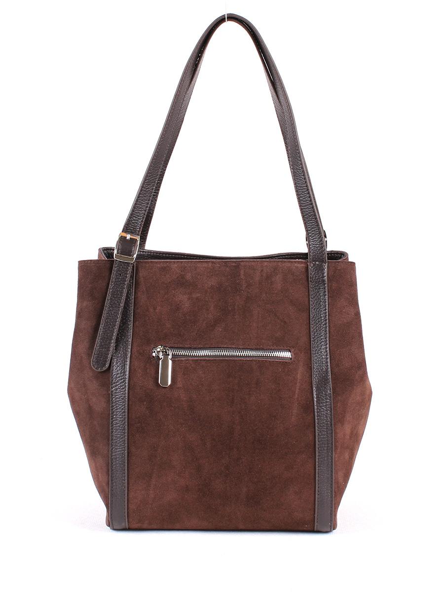 Сумка женская с одним отделением на молнии. На задней стенке - карман на молнии. Внутри - перегородка на молнии, два открытых кармашка для мелочей, карман на молнии для документов. Две ручки высотой 24 см.