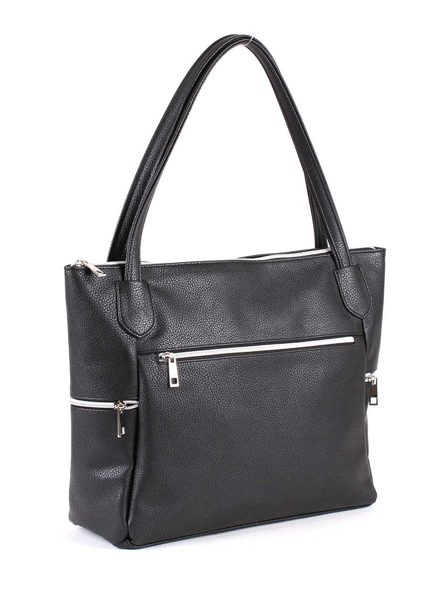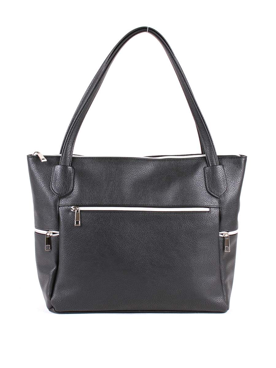 Сумка женская с одним отделением на молнии. На передней и задней стенке, а также по бокам - функциональные карманы на молнии. Внутри - два открытых кармана для мелочей и карман на молнии для документов. Две ручки высотой 25 см.