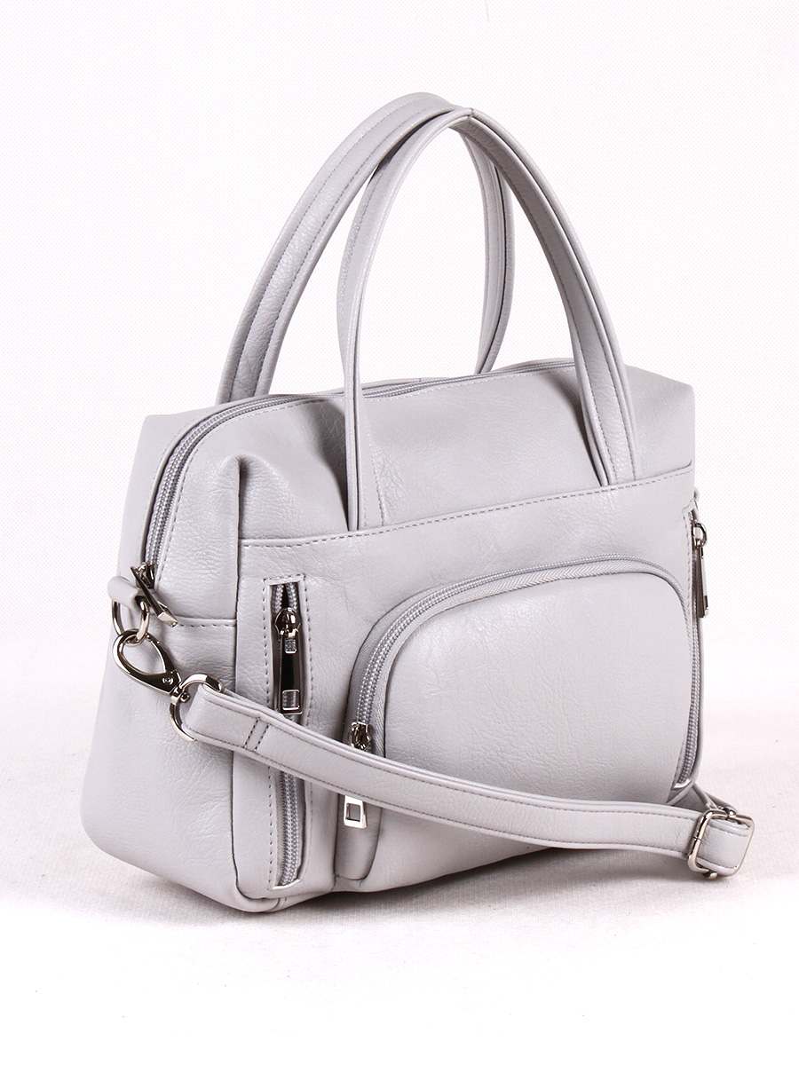 Сумка женская с одним отделением на молнии. На передней стенке -два вертикальных и один накладной карман на молнии. На задней стенке - карман на молнии. Внутри - карман на молнии для документов, открытый карман для мобильного телефона. Высота ручек - 15 см. Съёмный регулируемый ремень. Размеры 280х180х100
