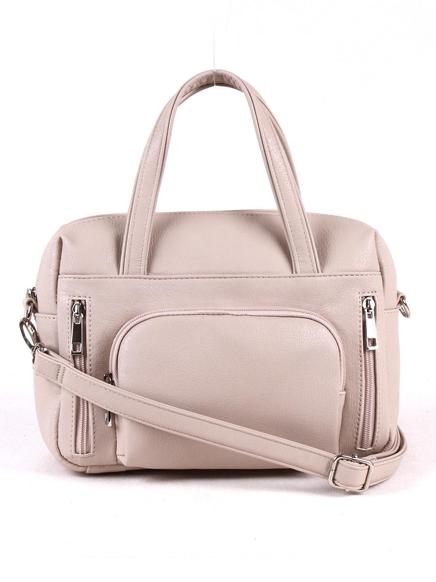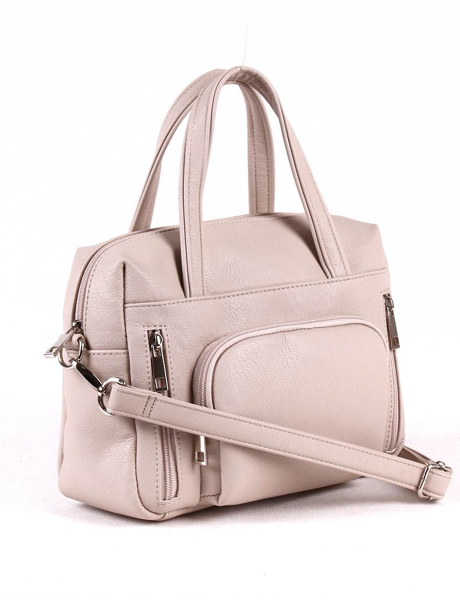 Сумка женская с одним отделением на молнии. На передней стенке -два вертикальных и один накладной карман на молнии. На задней стенке - карман на молнии. Внутри - карман на молнии для документов, открытый карман для мобильного телефона. Высота ручек - 15 см. Съёмный регулируемый ремень. Размеры 280х180х100