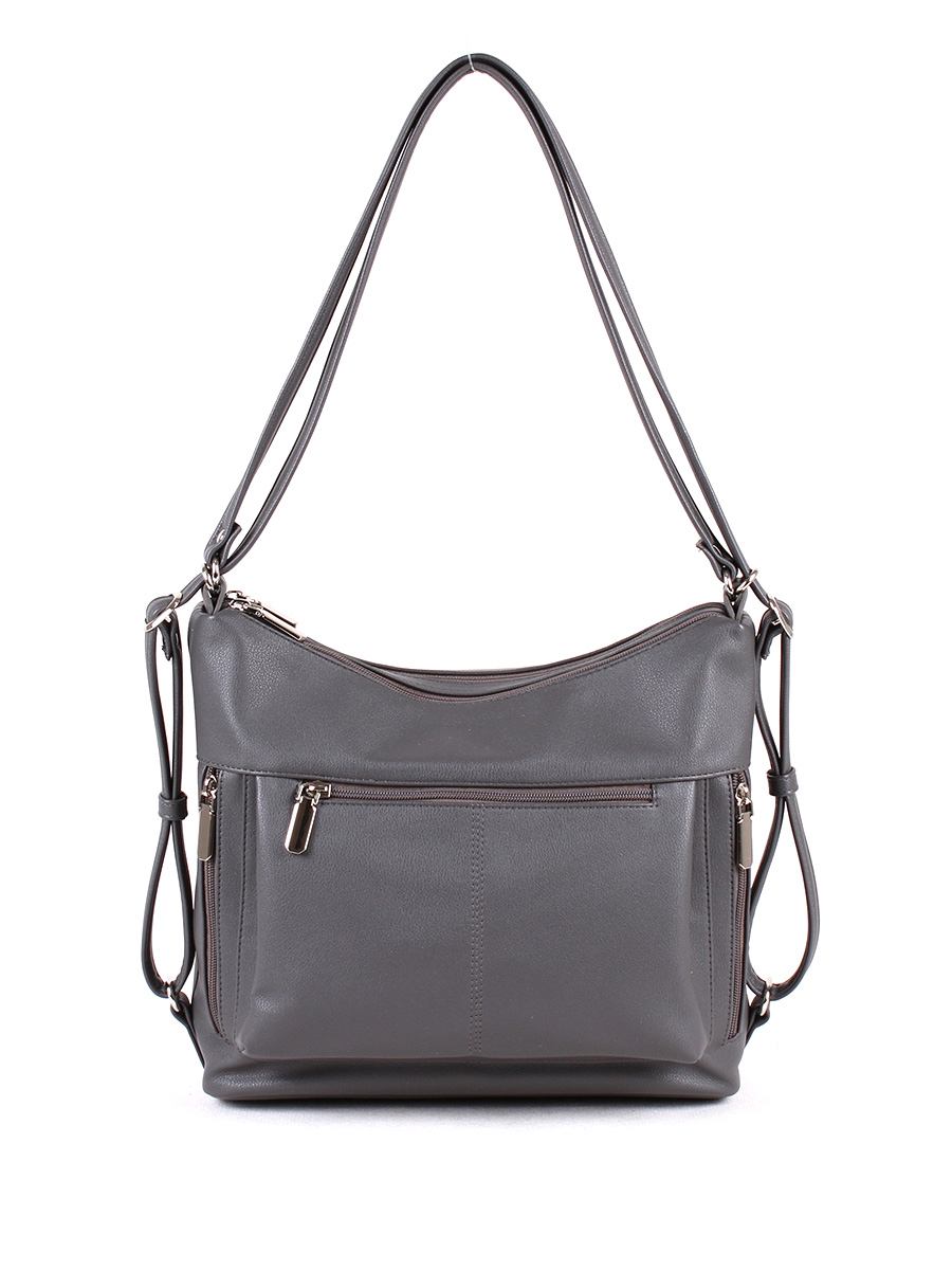 Сумка женская, трансформер, с двумя отделениями на молнии. На передней и задней стенке, а также по бокам - карманы на молнии. Внутри - карман на молнии для документов, два открытых кармашка для мелочей. Две регулируемые ручки с максимальной высотой 42 см., с помощью которых сумка трансформируется в рюкзак. Размеры 280х380х110