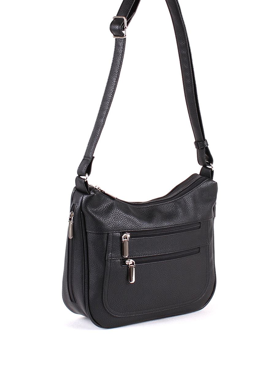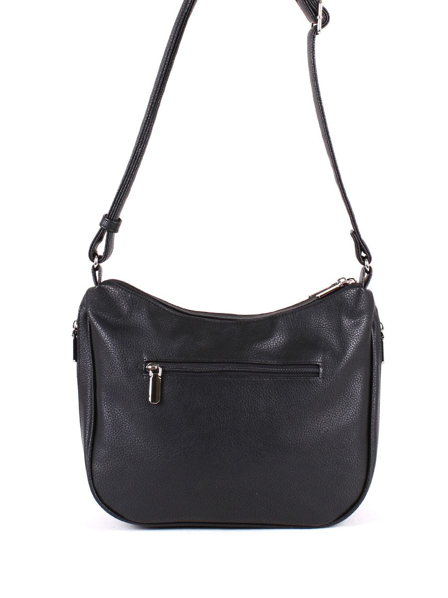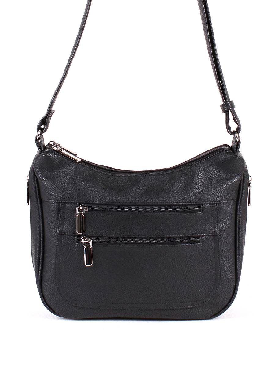Сумка женская с двумя независимыми отделениями на молнии. На передней стенке - два, на задней - один карман на молнии. Внтури одного отделения - открытый карман для сотового, в другом - карман на молнии. Несъёмный плечевой ремень регулируется по высоте от 35 до 65 см.