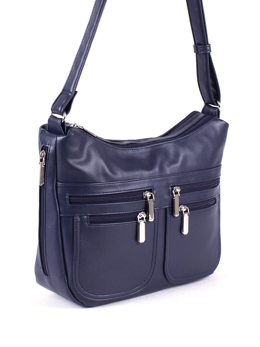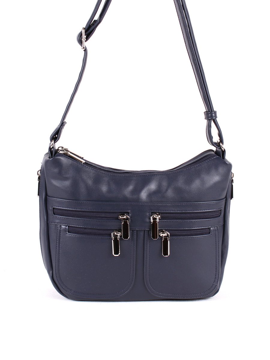 Сумка женская с двумя независимыми отделениями на молнии. На передней стенке - 4 кармашка на молнии. На задней стенке - также карман на молнии. Два функциональных кармана на молнии по бокам. Внутри - карман на молнии для документов, открытый карман для мелочей или мобильного телефона. Несьёмный плечевой ремень регулируется по высоте от 33 до 65 см.